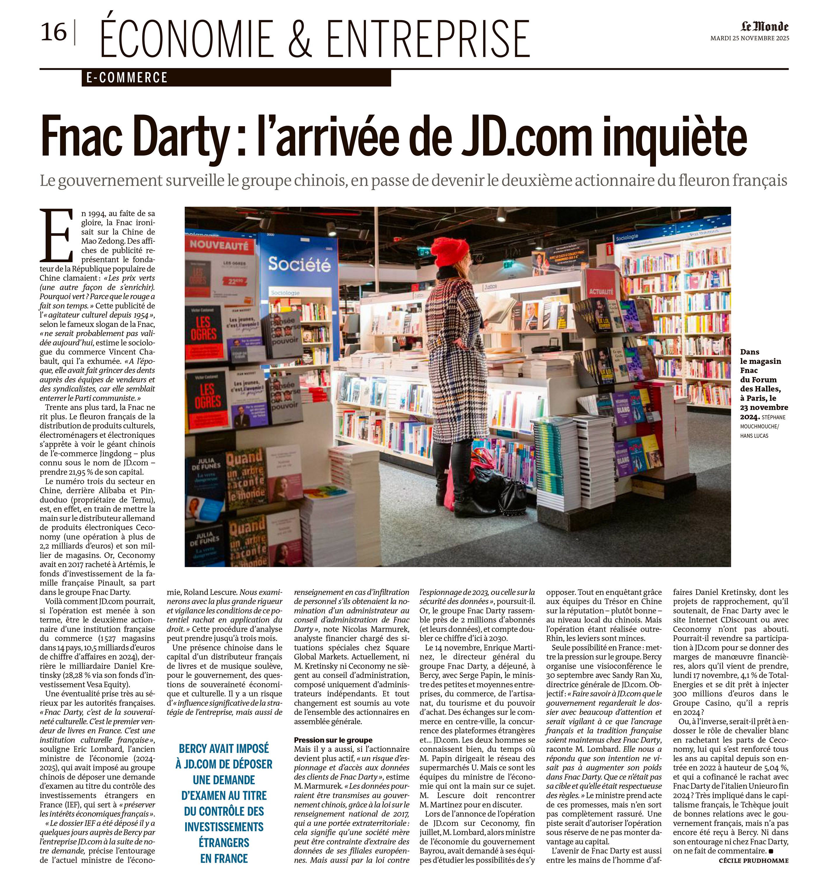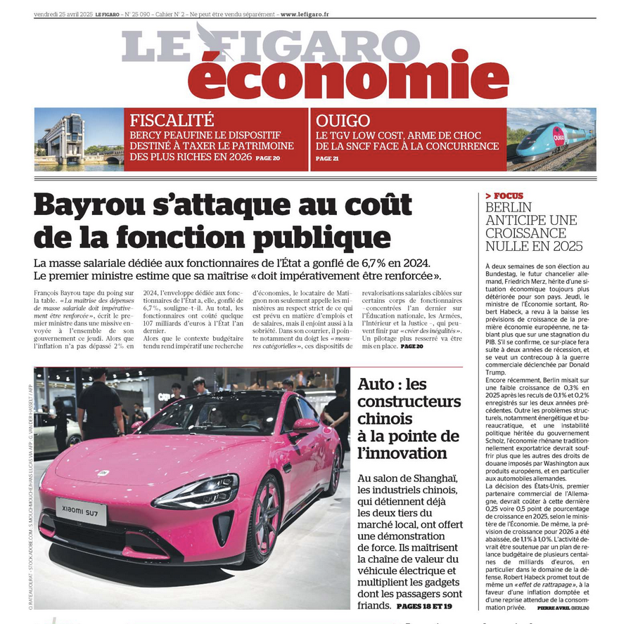 Stéphane Mouchmouche Publications Séries / Archive Culture — Paris — Politique — Société — Spiritualité — Sport Sélection de séries Le Monde, Fnac Darty : l'arrivée de JD.com inquiète L'Humanité, Une, Avec Macron c'est un naufrage La Tribune, Une, Primes, droits télé : la bonne affaire du PSG Libération, La "cible dans le dos" de la crypto L'Humanité Magazine, Avec modération, le temps de vivre Le Figaro Eco Ouigo Le TGV low cost arme choc de la SNCF contre la concurrence Le Parisien La mairie absue-t-elle des vacataires ? Le Figaro Madame. La culture, éruption de vie. L'Humanité 600 000 ouvriers Ubérisés à requalifier L'humanité, Le Cancer, un mal de l'exploitation du travail Médiapart, Grève du périscolaire à Paris Le Parisien Et vous, comment va votre ligne de métro ? The Times (UK) PM Candidates calls Macron's speech "revolting" La Tribune Croissance, déficit : l'OCDE noircit ses prévisions 2025 Elle Magazine Livres. Mars ou crève. Fortune Magazine (USA) Brewing EV Trade war between the EU and China The Epoch Times Japan (Japon) Paris Motor Show CNBC (USA) Germany's auto giants are struggling to stay relevant Marianne François Hollande, essayiste La Lettre Un prestataire de Dassault victime d'une cyberextorsion