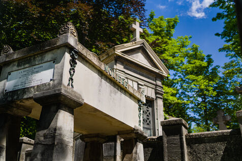 General illustration of the Père Lachaise cemetery in Paris, France.