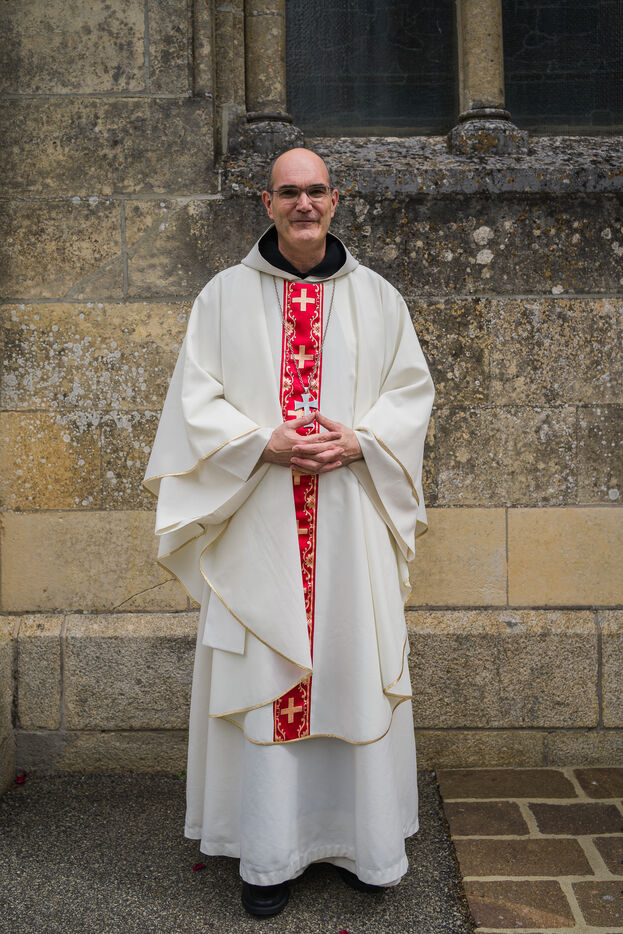 Mass celebrated by Mgr Bruno FEILLET, bishop of SEEZ, for Father GUERRIC and Father THOMAS' 20th anniversary of priesthood at the Abbaye de la TRAPPE in Normandy, France, on August 4, 2022.