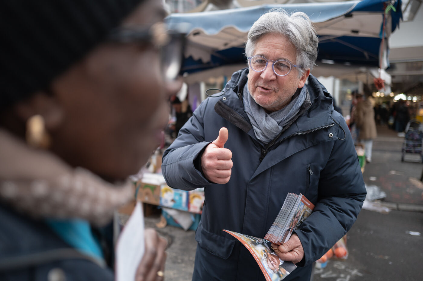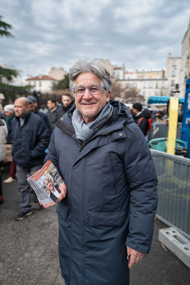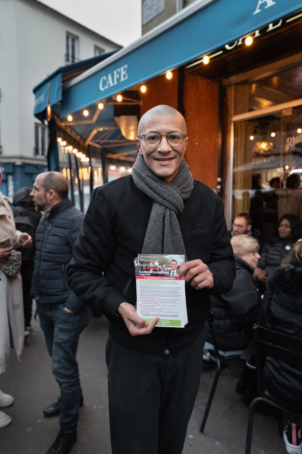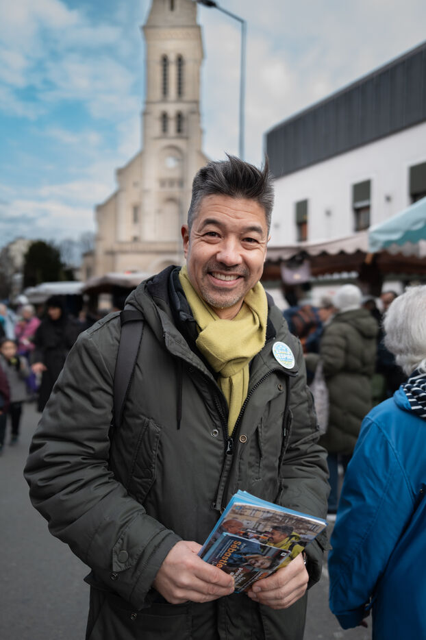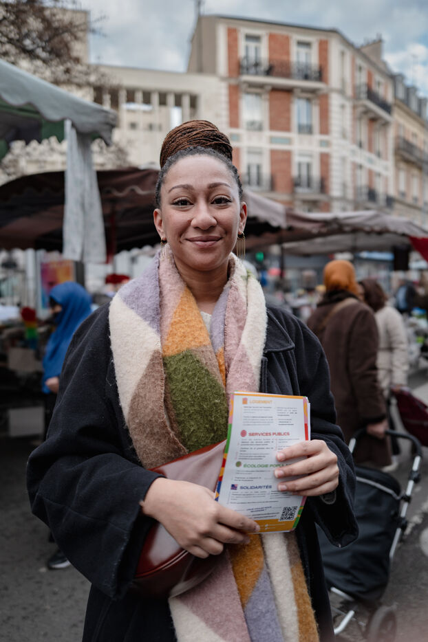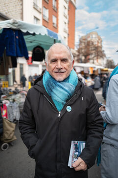 Campaign of the five candidates running in the municipal elections in Saint-Ouen-sur-Seine in the department of Seine-Saint-Denis in France.