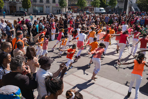 Illustration of the city of Saint Denis in the department of Seine Saint Denis in France. Urban landscapes and daily life between 1980 and 2006.