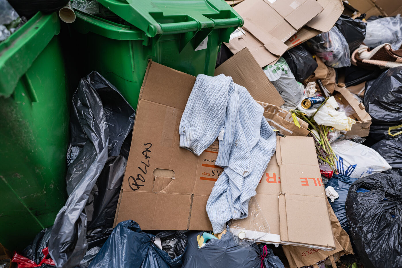 General illustration of the 2023 garbage collectors' strike. On the twelfth day of the strike, March 17, more than 10,000 tons of waste had not been collected. The strike lasted 23 days, from March 6 to March 29, 2023.