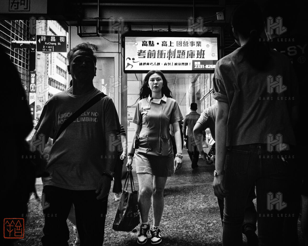 Sous les préaux des rues Guanqian, dans le quartier de Zhongshan, les piétons cherchent un peu d’ombre, les yeux fuyant les publicités criardes qui tapissent les murs, leurs pas absorbés par le cliquetis du monde autour d’eux.