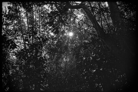 Between Yonggong Street and Yangde Road, in the district of Shilin, the vegetation spills over like a fevered dream, vines hang from the embankments in long tresses, leaves as large as the shadows of birds flutter gently in the light, bamboos crack softly in the stillness, and hillside gardens appear drawn by the absent-minded hand of a lovesick god. The murmur of water rises from hidden hollows, clear and steady, like an ancient breath. Birds call without revealing themselves bursts of song, sudden cries, scattered among the branches. And the light, slipping across shoulders, warms the skin, mingles with the thick air, and makes each drop on the leaves shimmer like a quiet secret. Here, Yangmingshan does not show itself. It seeps in, scent by scent, until everything becomes forest. A forest that walks slowly through the mind, long after the path has ended.