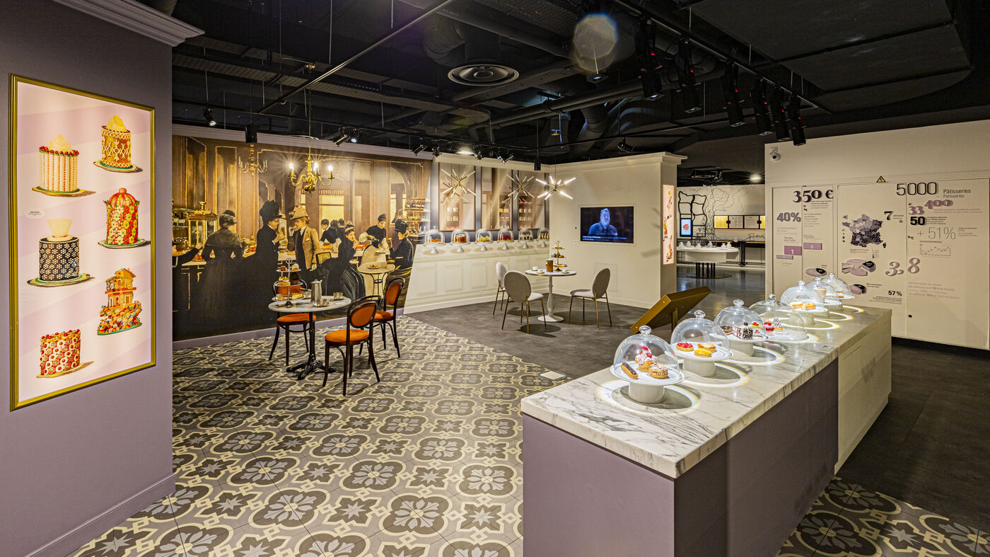Temporary exhibition "C'est pas du gâteau" presented at the Cité de la gastronomie et du vin in Dijon, from its opening in May 2022 until October 2023. This exhibition illustrates the French way of eating well. Sponsored by Pierre Hermé, it invites us to delve into the secrets of French pastry-making.