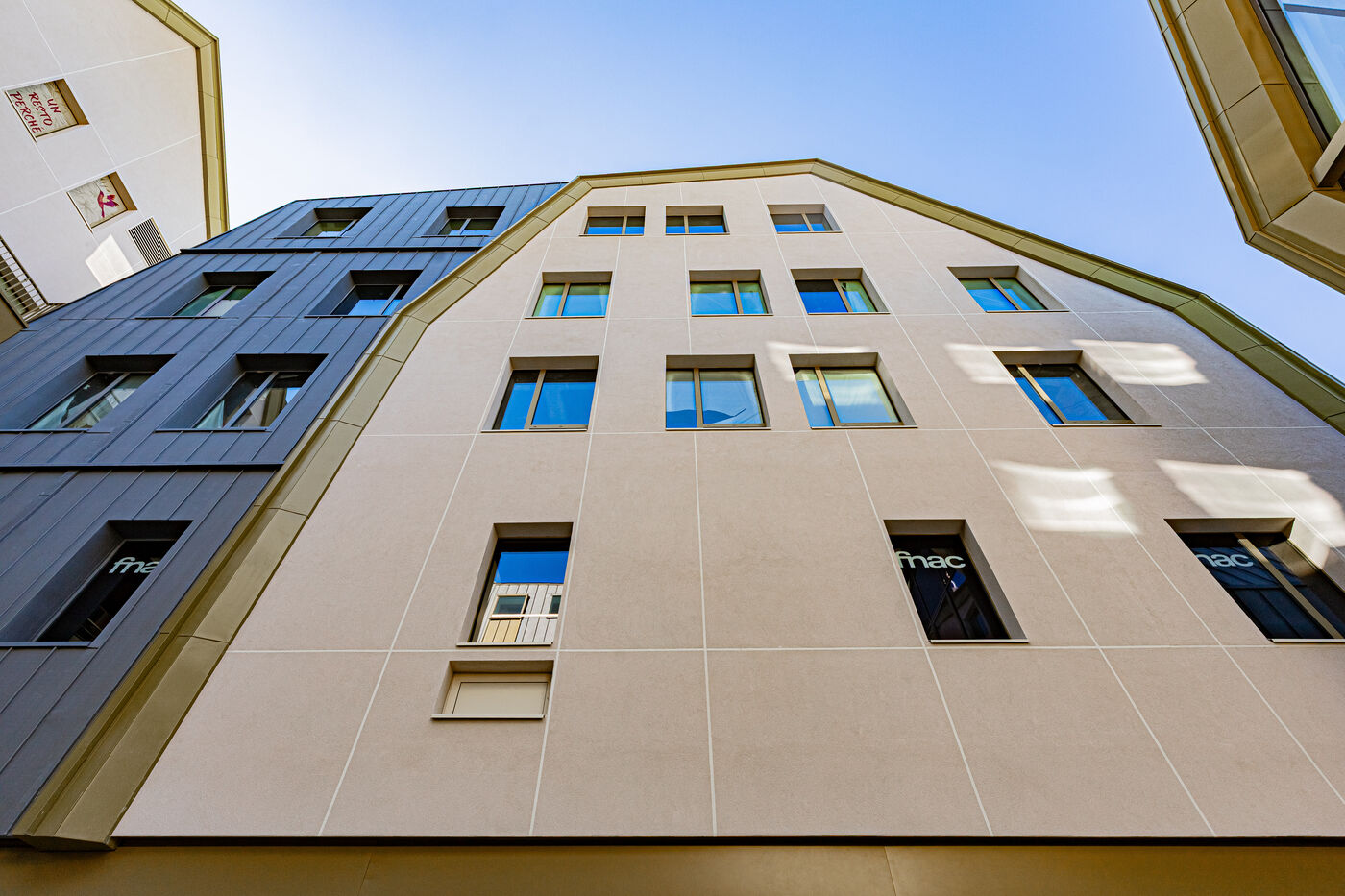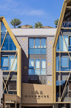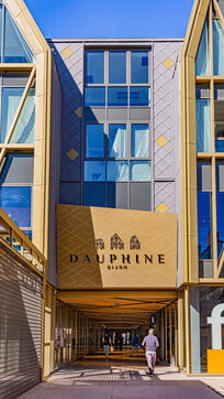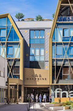 The new Dauphine Center Dijon illustrates Dijon's architectural dynamism, offering clean lines and modern materials in the heart of the city. This series seeks to capture the contrasts between the surrounding Dijon history and this contemporary structure. The objective is to highlight the integration of this center and the play of shadows and reflections that animate its glass facades, testifying to the evolution of the urban landscape of the Burgundy capital. The gilded door and window frames recall the Bareuzai courtyard, the other project of investor Marc Fortunato.