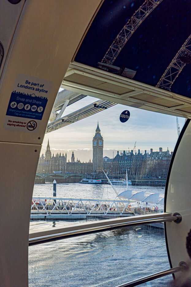 An enduring symbol of London, Big Ben (Elizabeth Tower) lends itself here to a play of contrasting perspectives. This series proposes a dialogue between ground level, where the sculpted stone asserts its historical power, and the London Eye gondola, which offers a plunging, contemporary viewpoint. The aim is to capture the elegance of this monumental clock as it overlooks the Houses of Parliament and the River Thames. Between architectural details captured at the foot of the tower and breathtaking panoramas, these photographs bear witness to the fascination exerted by this monument, a true temporal beacon in the heart of the British metropolis.