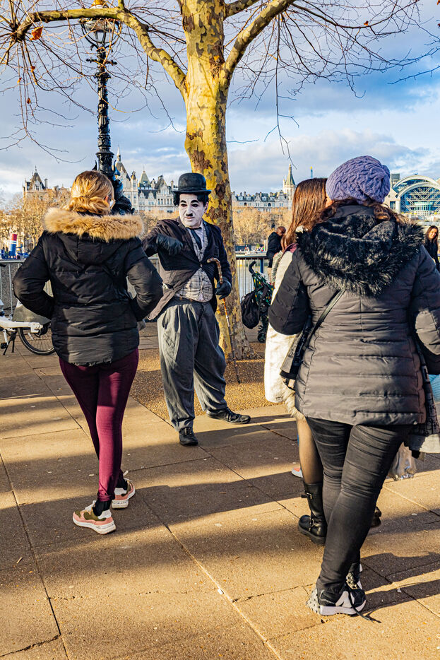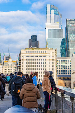 Mon regard s'arrête sur ces instants de vie suspendus : le passage iconique d'un bus impérial, le flux des passants sur les ponts ou la quiétude d'une cabine téléphonique détournée par la nature. La photo vient sculpter la lumière naturelle pour accentuer le relief de la rue et donner à ce réalisme urbain une dimension presque narrative, où chaque visage et chaque mouvement deviennent les traits d'une histoire en cours."