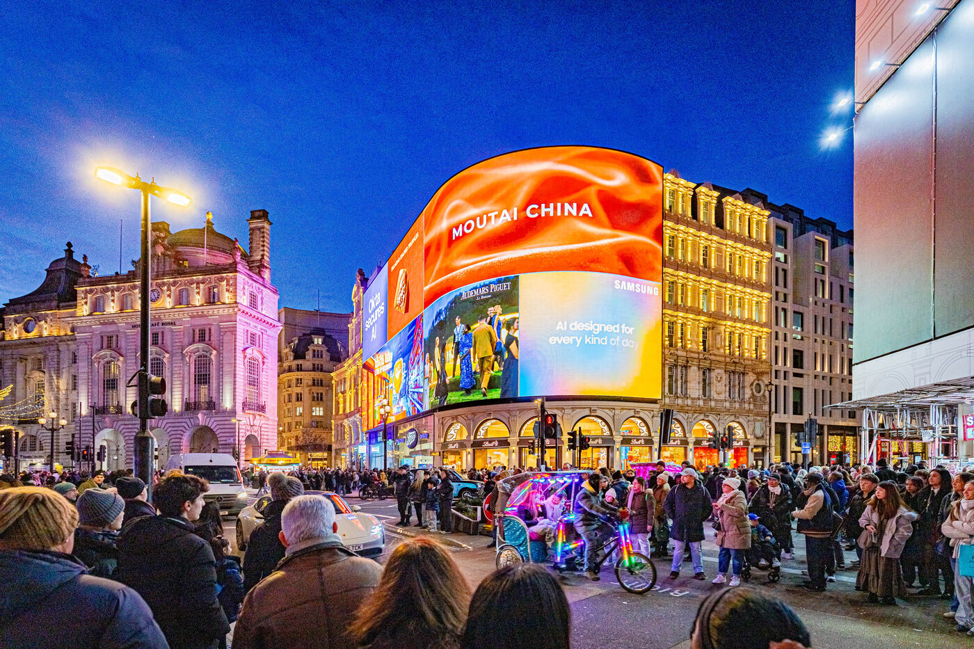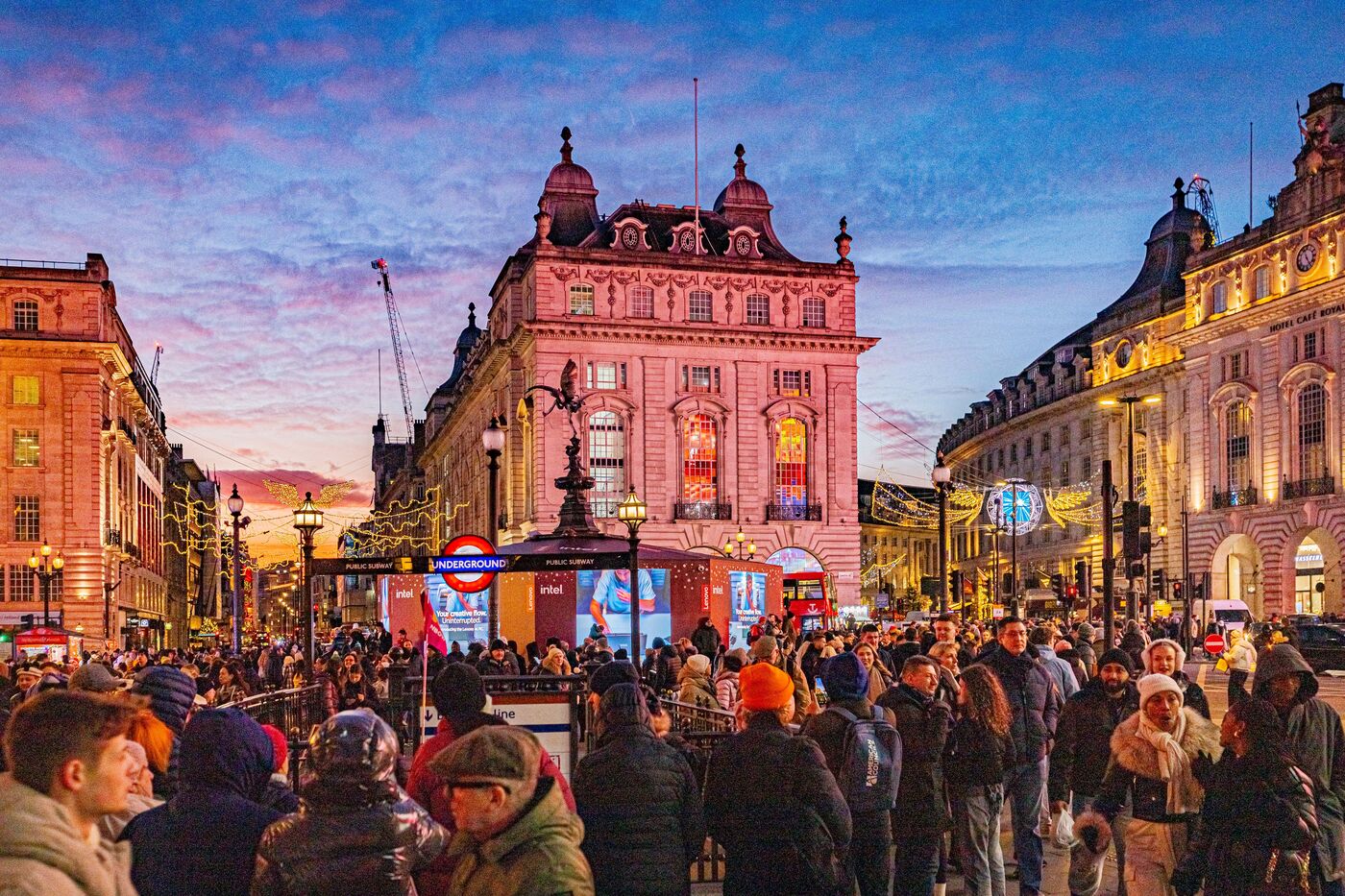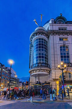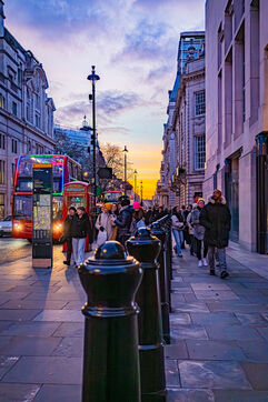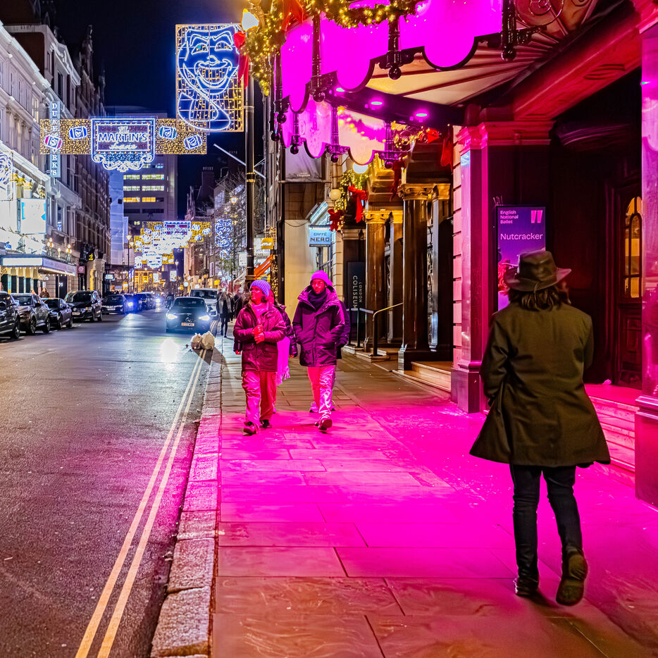 Quand la ville s'éveille sous les néons. Dès que le soleil décline, Londres change de visage et revêt une parure de lumières vibrantes. Cette série explore la métropole dans sa dimension nocturne, là où le bitume s’illumine des reflets rouges des bus et de l’éclat des enseignes de Piccadilly.