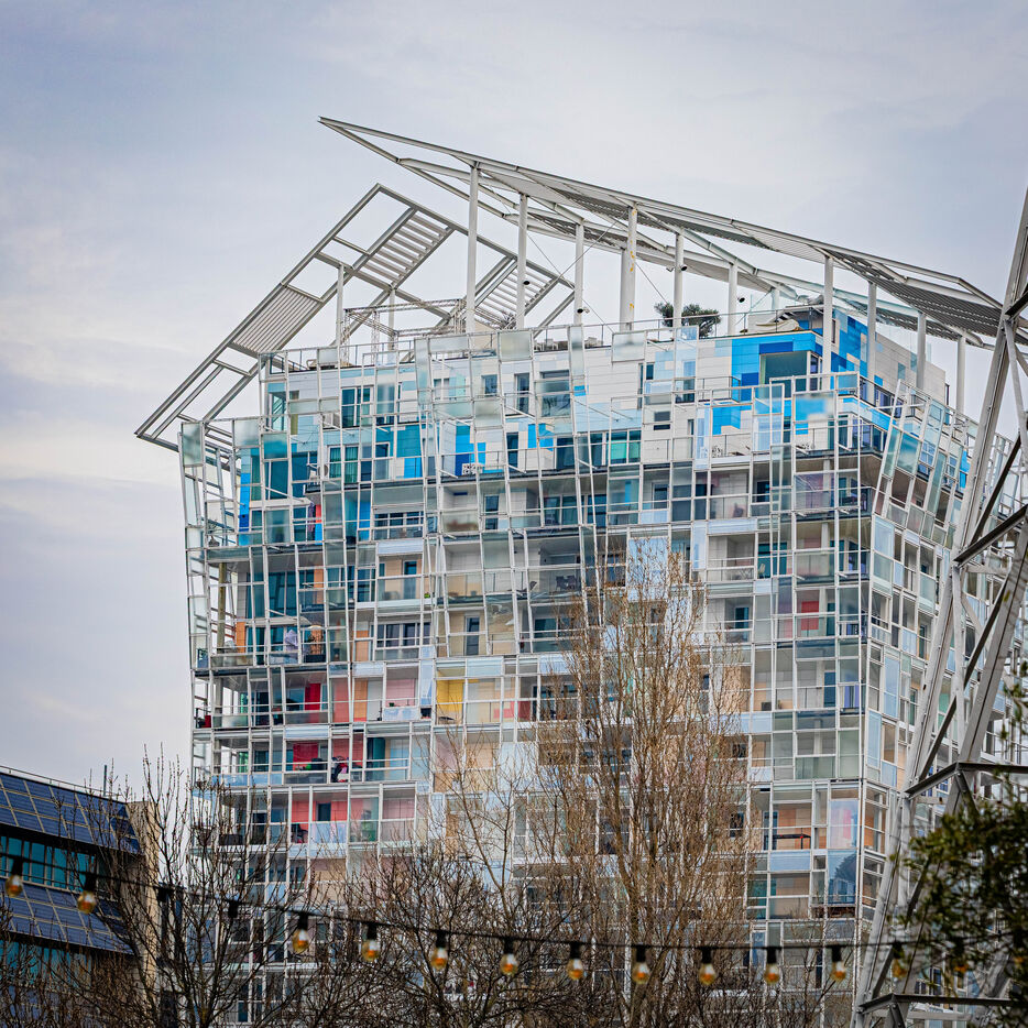 At the tip of Lyon's peninsula, where the Rhône and Saône rivers meet, the La Confluence district embodies the future of urban planning. Created in January 2026, this photographic series captures the essence of this spectacular transformation. The lens focuses on the striking contrasts that define the area: the preservation of the port's industrial heritage, symbolized by the imposing silos of La Sucrière, juxtaposed with the eccentricity of contemporary buildings such as the famous Orange Cube and the Euronews building (Green Cube). Between the redeveloped docks, the perforated geometric facades and the omnipresent river, these photos bear witness to a city in full reinvention, rethinking its relationship to ecology, public space and light.