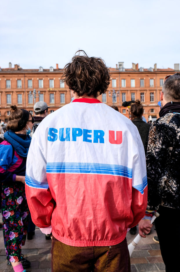 Déambulation burlesque des artistes de l'association Cirque des petites natures dans les rues de Toulouse. Ce collectif auto-géré ne peut pas proposer son spectacle "Cabaret 2000" a cause des restrictions liées au COVID.