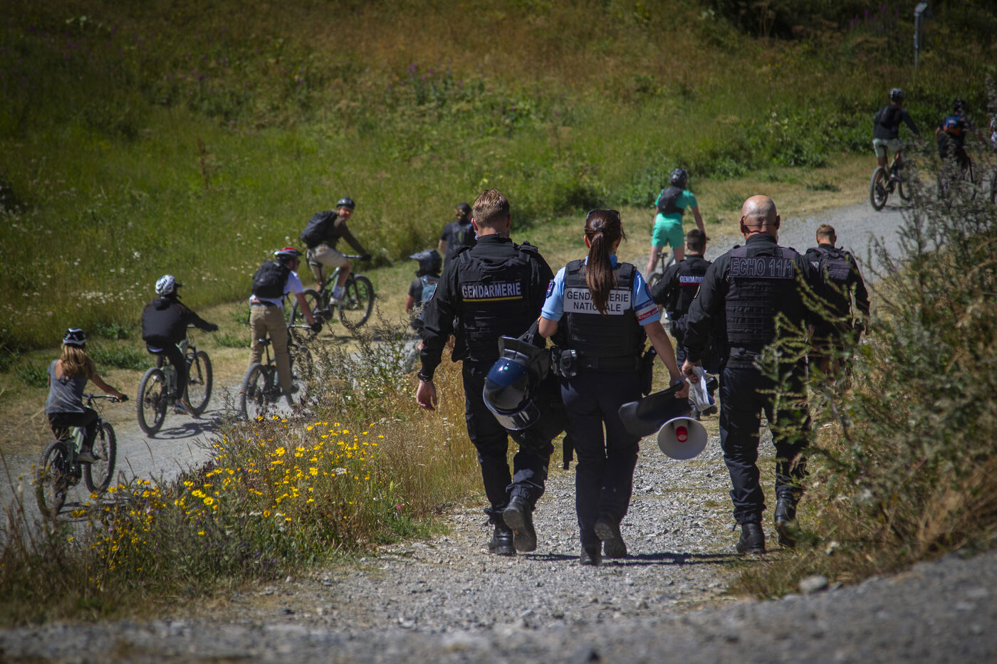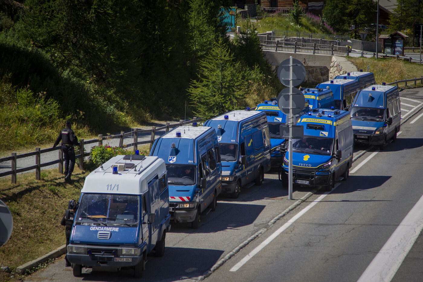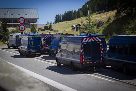 On-site, gendarmes equipped for crowd control meticulously inspected each car crossing the border. The goal was clear: to prevent the "No Border" activists from reaching the town of Briançon. Their presence also piqued the curiosity of golfers and mountain bikers nearby, observing the situation with interest.