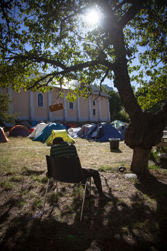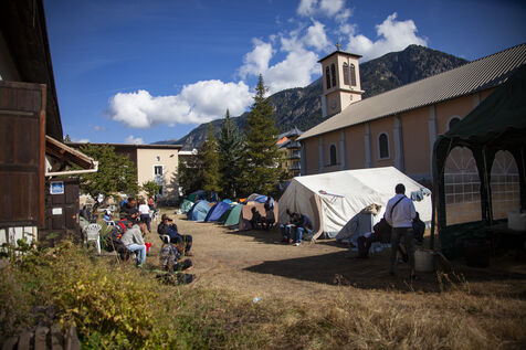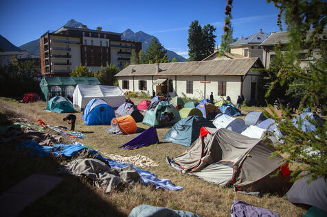 Suite à la fermeture du lieu d'accueil pour les exilés à Briançon, "Les Terrasses Solidaires", la paroisse de Briançon a mis à disposition ses locaux et a autorisé l'installation de tentes à l'extérieur, et ce, pour une durée indéterminée. Environ une centaine de personnes sont accueillies avec la bénédiction de l'évêque de Gap.