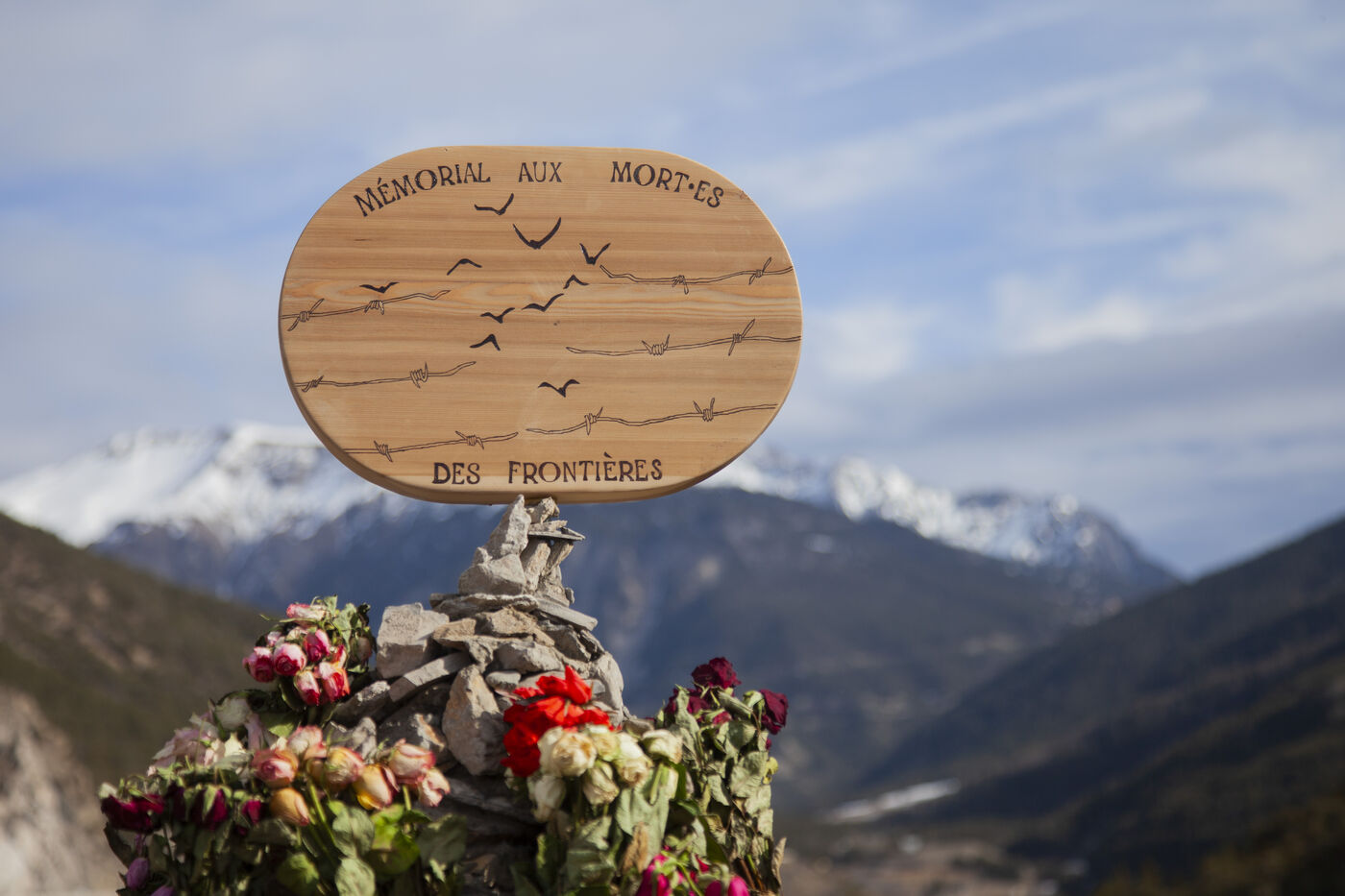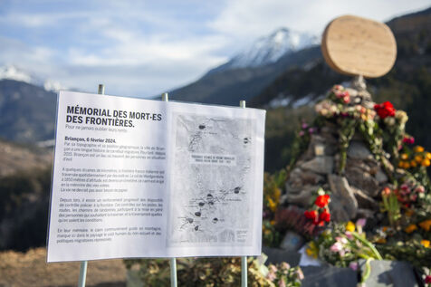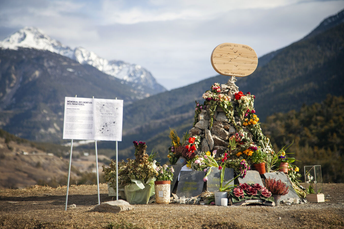 A 'Memorial to Remember' was erected in the morning by Briançon Solidarité Exil on the Asfeld bridge. It is a cairn, symbolizing the path to take in the mountains. This monument pays tribute to the twelve individuals who lost their lives while attempting to climb the mountain to reach Briançon. It resonates with the lack of hospitality and the militarization of borders that drive migrants to take increasingly dangerous risks.
