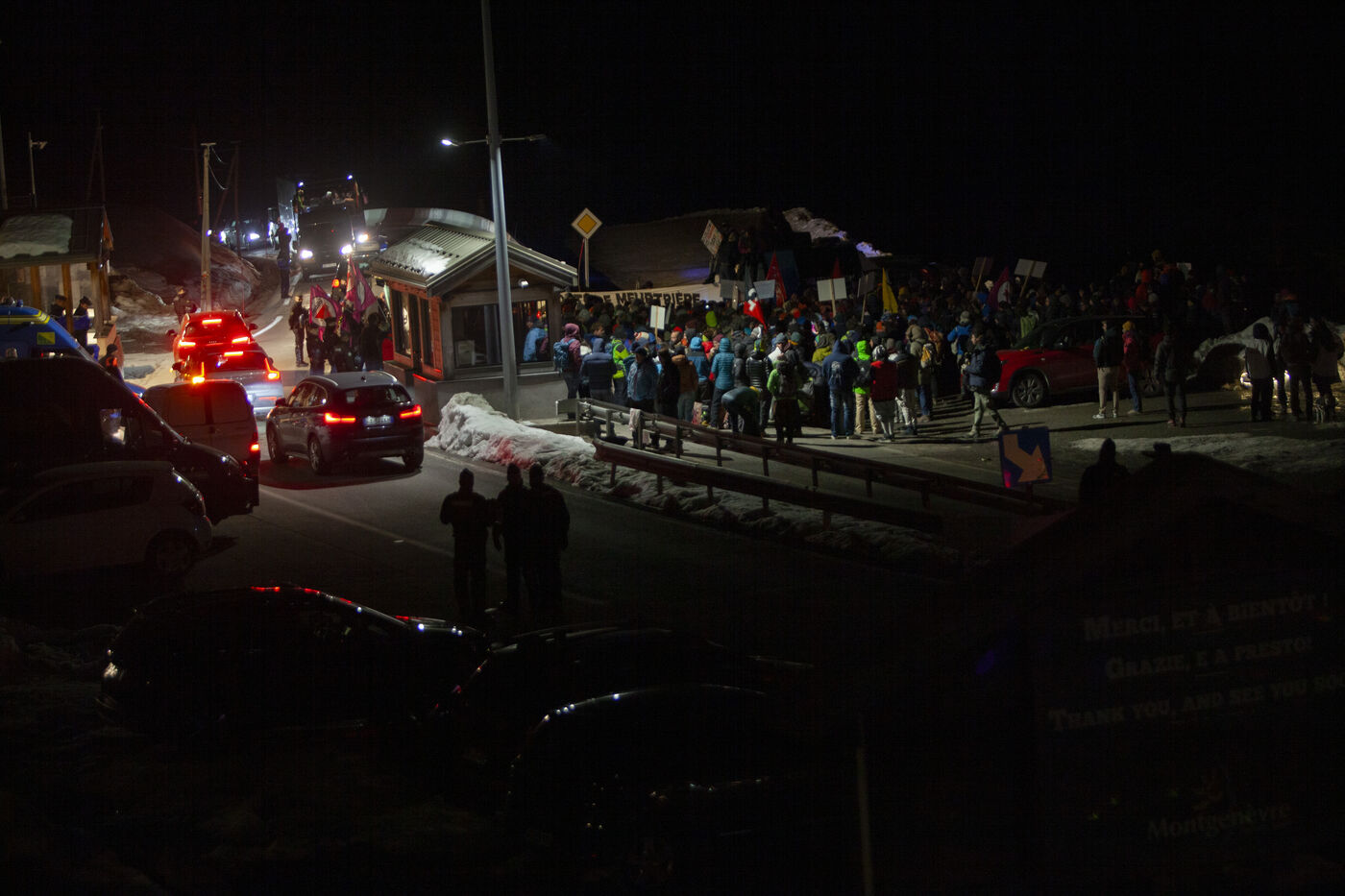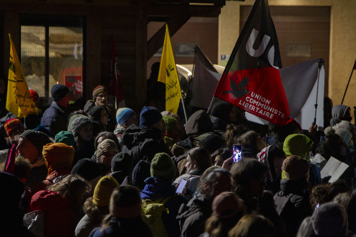 Ce samedi 16 mars, à Montgenèvre, un nombre important de personnes se sont rassemblées pour exprimer leur opposition à la militarisation de la frontière et ses conséquences. Entre août et octobre 2023, trois individus ont tragiquement perdu la vie dans la région de Briançon. Ces décès sont attribués directement aux choix politiques qui maintiennent un dispositif répressif à la frontière, entravant ainsi le passage des personnes exilées. Pendant plus de deux heures, les manifestants ont exprimé leur colère et leur désapprobation des méthodes policières envers les migrants devant le poste de la Police aux Frontières à Montgenèvre. Avant de partir pour la Grande Maraude,, ils ont partagé un repas à la Maison de la Montagne.