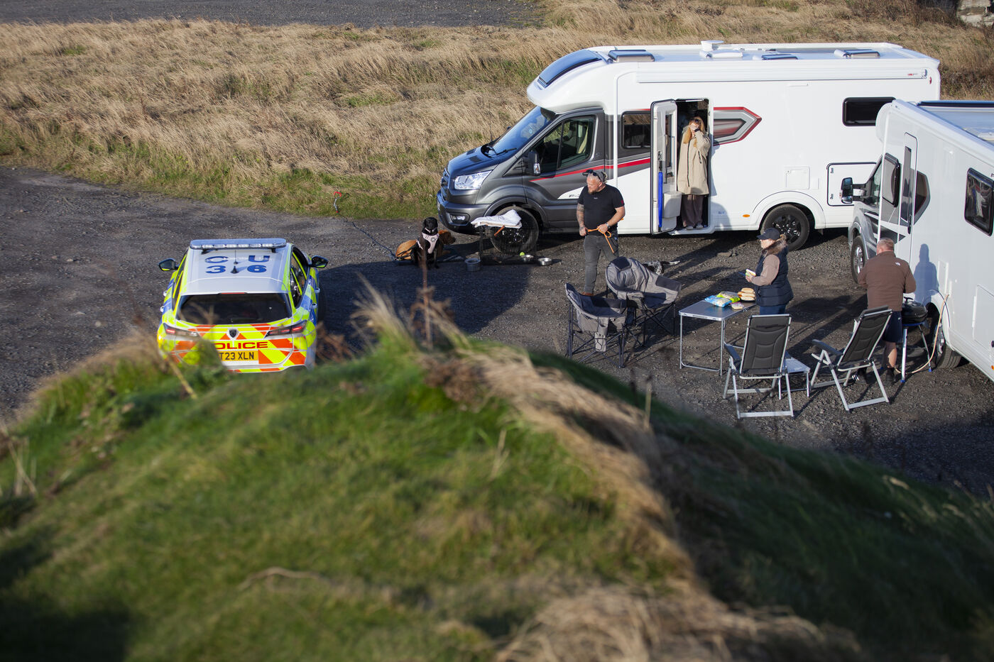 Photo 9 : Les falaises de Wick sont d’une beauté incroyable. Ici, les visiteurs se font rappeler à l’ordre par une patrouille de police : il est interdit d’y passer la nuit.