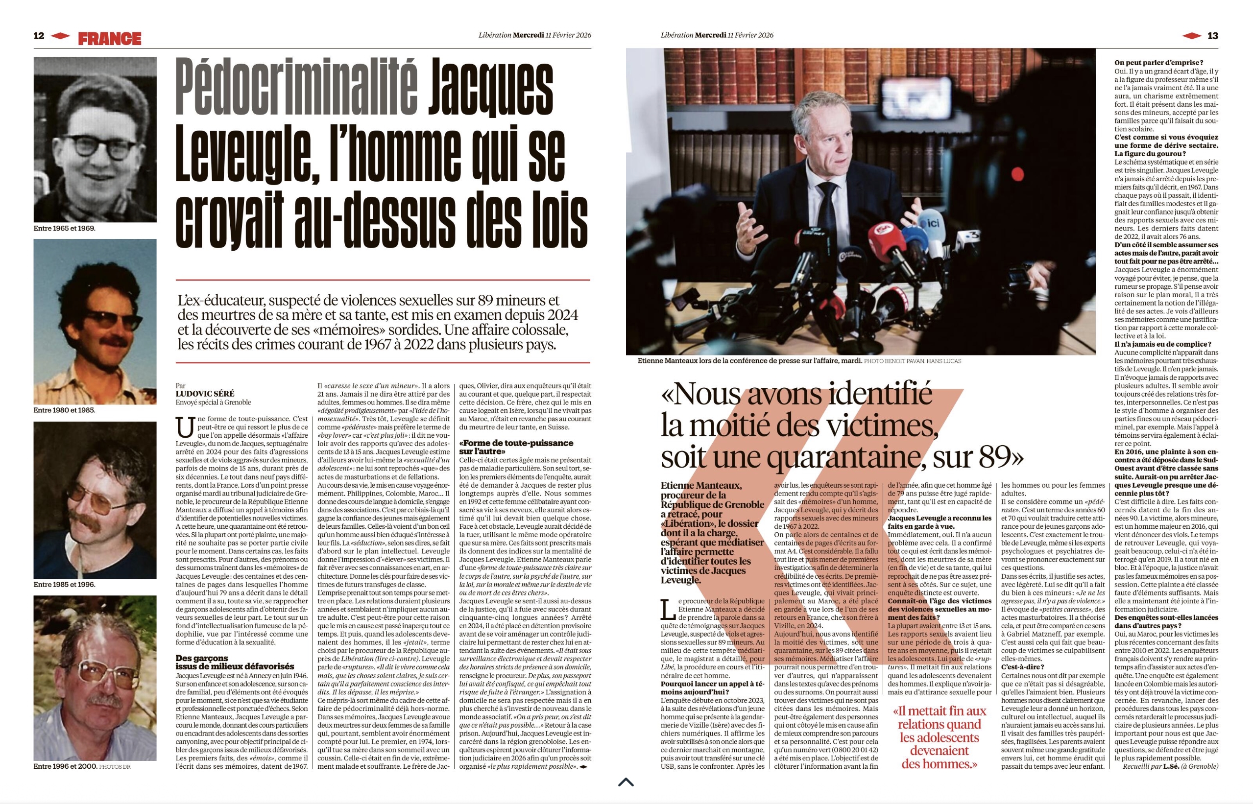 Publications Europe 1 Grichka BEYSSON-LEANDRI Famille Chrétienne Jc Milhet Famille Chrétienne - Une Jc Milhet Ouest France Grichka BEYSSON-LEANDRI Epoch Times Grichka BEYSSON-LEANDRI Le Courrier de l'Ouest Frédéric Pétry Libération Grégory Dziedzic L'Humanite magazine du 12/02/2026 Valérie Dubois BUNTE.DE 12 février 2026 André Bourriquen La croix Sebastien Di Silvestro [PRINT] Libération - commande | Affaire Jacques Leveugle Benoit Pavan Groupe Colbert campagne de communication février 2026 André Bourriquen Actu.fr Grichka BEYSSON-LEANDRI [PRINT] Ouest-France - via AFP | Étienne Manteaux Benoit Pavan L'Humanité Quentin de Groeve La Croix Quentin de Groeve Libération Jc Milhet [PRINT] Libération | Étienne Manteaux Benoit Pavan Epoch Times Grichka BEYSSON-LEANDRI L'Humanité Jc Milhet