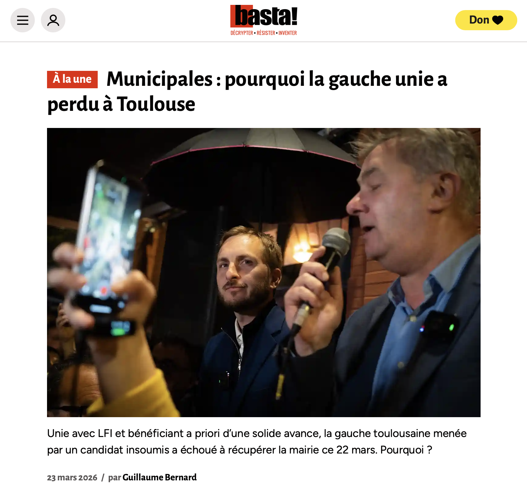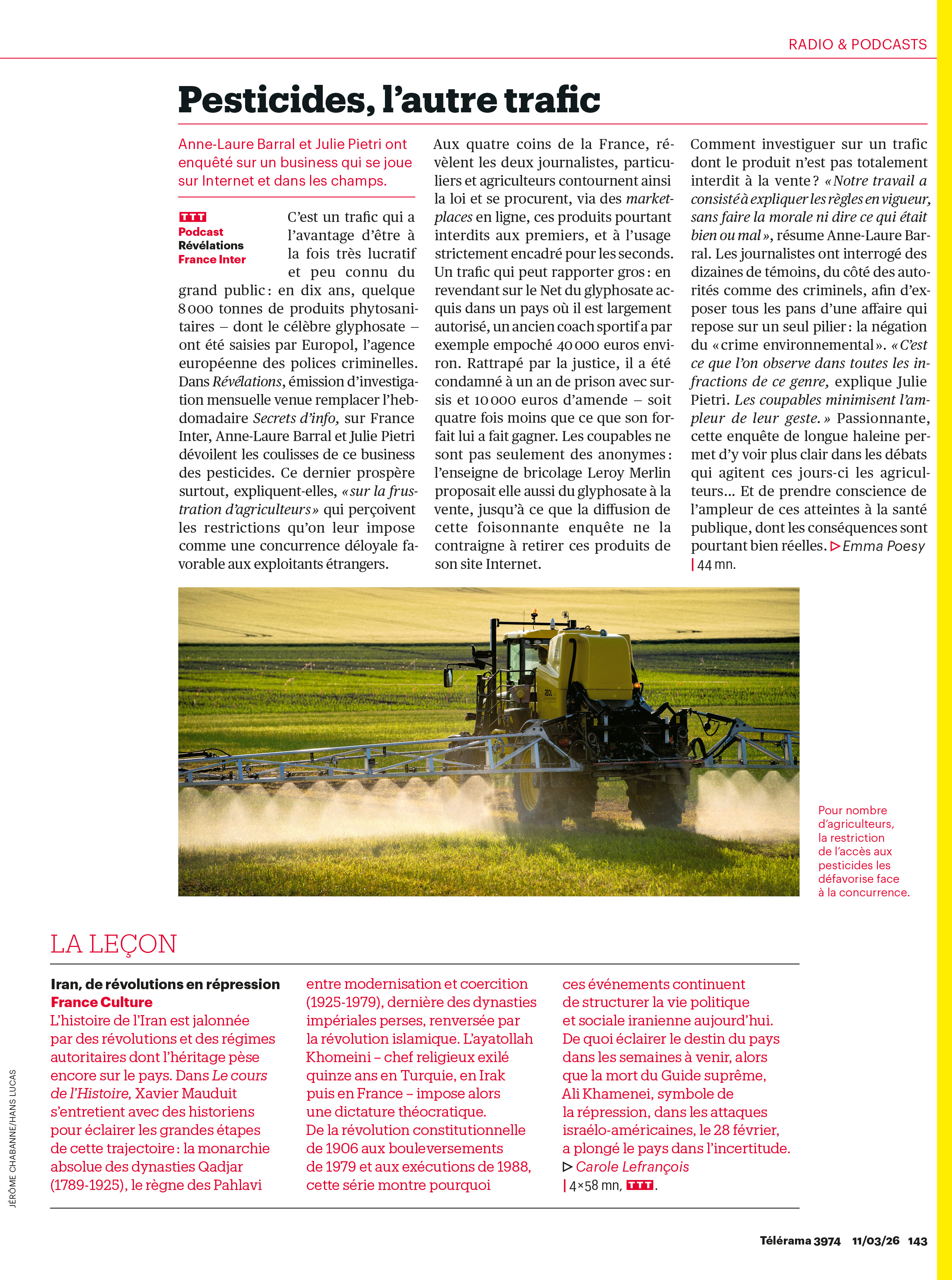 Publications Le Parisien Week-end Panayotis Pavleas [WEB] Mediapart - via AFP | Sophie Binet Benoit Pavan [PRINT] Libération | Vencorex Benoit Pavan Le Figaro Quentin de Groeve La Croix - Vacances en famille Jérôme Chabanne Telerama - Trafic de pesticides Jérôme Chabanne Le Nouvel Obs - 26 mars 2026 Maylis Rolland Les Echos Quentin de Groeve L'HUMANITE 24 mars 2026 André Bourriquen Reporterre- 24/03/26 Sandrine Gueymard Le Figaro Yohan Bonnet We Demain - mars 2026 Émile Loreaux La Tribune - 18 février 2026 Émile Loreaux Basta!, 23 mars 2026 Grégory Dziedzic [PRINT] Le Journal du Dimanche | Hommage à Arnaud Frion Benoit Pavan [PRINT] Libération | Laurence Ruffin Benoit Pavan Web - BASTA - plan du gouvernement contre la haine anti-LGBT+ Laurent Demartini LSA Jean-François FORT LIBERATION Julien Coquentin La Vie - 19 mars 2026 Nicolas Guyonnet
