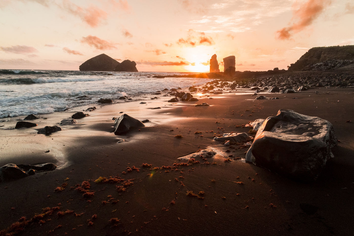 Elle la plus grande et la plus orientale de l?archipel des Açores avec ses 740 km2 et la plus peuplée, l?île de São Miguel est convoitée par les baroudeurs de la planète. Découverte européenne pour les vacanciers américains, terrain de jeu pour passionnés de randonnée, trails et de cyclisme, l?île est encore préservée, protégée du tourisme de masse par des kilomètres d?océan, des falaises vertigineuses et une météo changeante. Des sources chaudes de Furnas à la sublime plage de sable noir de Mosteiros, des plantations d?ananas de Fajã de Baixo aux nombreux lacs nichés dans de verdoyants cratères, São Miguel regorge de trésors.