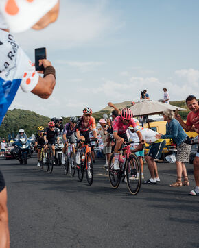 Un 14 juillet haut en couleurs sur les routes du Puy de Dome avec l'arrivée de la Caravane du Tour de France 2025 devant une foule venue massivement assister à la fête.