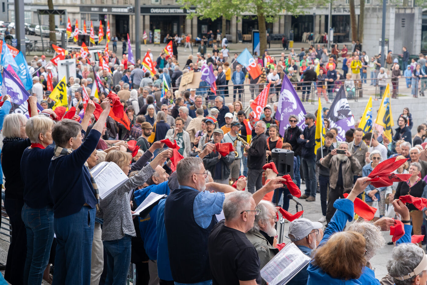 Brest, France, May 1, 2025. At the call of the inter-union, just over 2,000 people gathered in Brest to demonstrate for workers' rights, joined by other current struggles such as the war in the Middle East and women's rights.