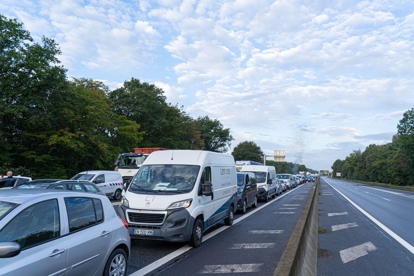 France, Rennes, September 10, 2025, several gatherings were organized on social networks to block the city. About 250 protesters gathered at 7 a.m. near the Henry-Fréville metro station to block the southern ring road of Rennes.