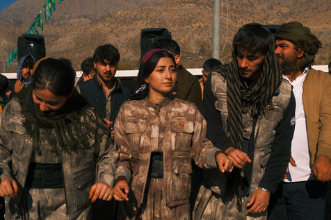 On November 28, 2025, 6 months after announcing its dissolution to open the road towards durable peace with Turkey, the PKK celebrates its 47th anniversary tucked in its safe haven in the Qandil mountains in Iraqi Kurdistan. Thomas Noonan negotiated rare access to the celebrations even as the PKK had not received foreign journalists in nearly a decade. His photographs bear witness to a movement which, although officially dissolved, celebrates what it perceives as a great political victory, through traditional dances, songs, and commemorations of the victims of 5 decades of war. For the first time, the celebrations are not disturbed by Turkish strikes, and the civilian supporters of the movement can celebrate hand in hand with the guerrilla fighters.