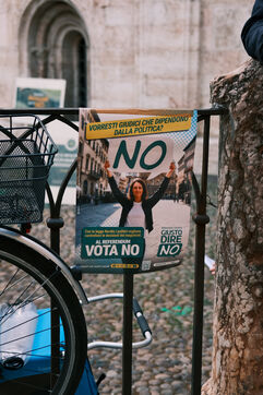 Le vendredi 20 mars 2026, la campagne VOTA NO effectue son dernier rassemblement à Trente, au nord de l'Italie, en amont du référendum national des 22 et 23 mars portant sur la réforme de la justice italienne proposée par le gouvernement Meloni. La réforme vise à simplifier et écourter les procédures judiciaires afin de lutter contre la politisation des magistrats, mais ses opposants l'accusent d'éroder la séparation des pouvoirs et de montrer un tournant autoritaire du gouvernement Meloni.