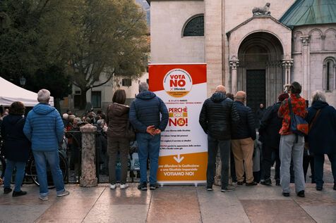 On Friday, March 20th, 2026, the VOTA NO campaign holds its last rally in Trento, in northern Italy, ahead of the national referendum on the 22nd and 23rd of March on the Italian justice reform proposed by the Meloni government. The reform aims to shorten and simplify judicial proceedings and curtail the politicisation of magistrates, but its opponents accuse it of eroding the separation of powers and of revealing the authoritarian shift of the Meloni government.