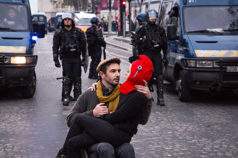 Si des instants de poésie ont été observés, notamment avec ce couple qui s'enlace devant les forces de l'ordre, la jeune fille étant coiffée d'un bonnet phrygien, ces manifestations durant lesquelles les journalistes sont aussi pris pour cible, se terminent souvent dans la violence.