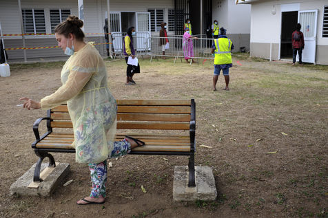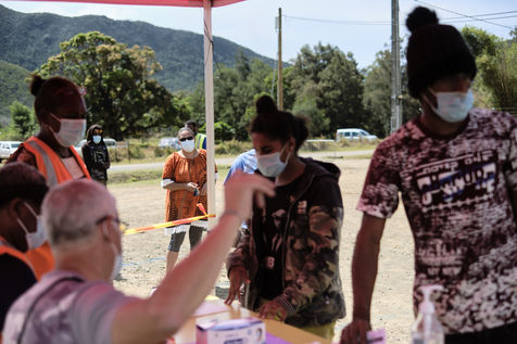 New Caledonia, Kouaoua, Saturday September 25, 2021. The town is organizing a local vaccination operation for the tribal populations. The Coronavirus epidemic has been progressing in New Caledonia since early September, when only 50 per cent of the population received a dose and the vaccination campaign slowed.