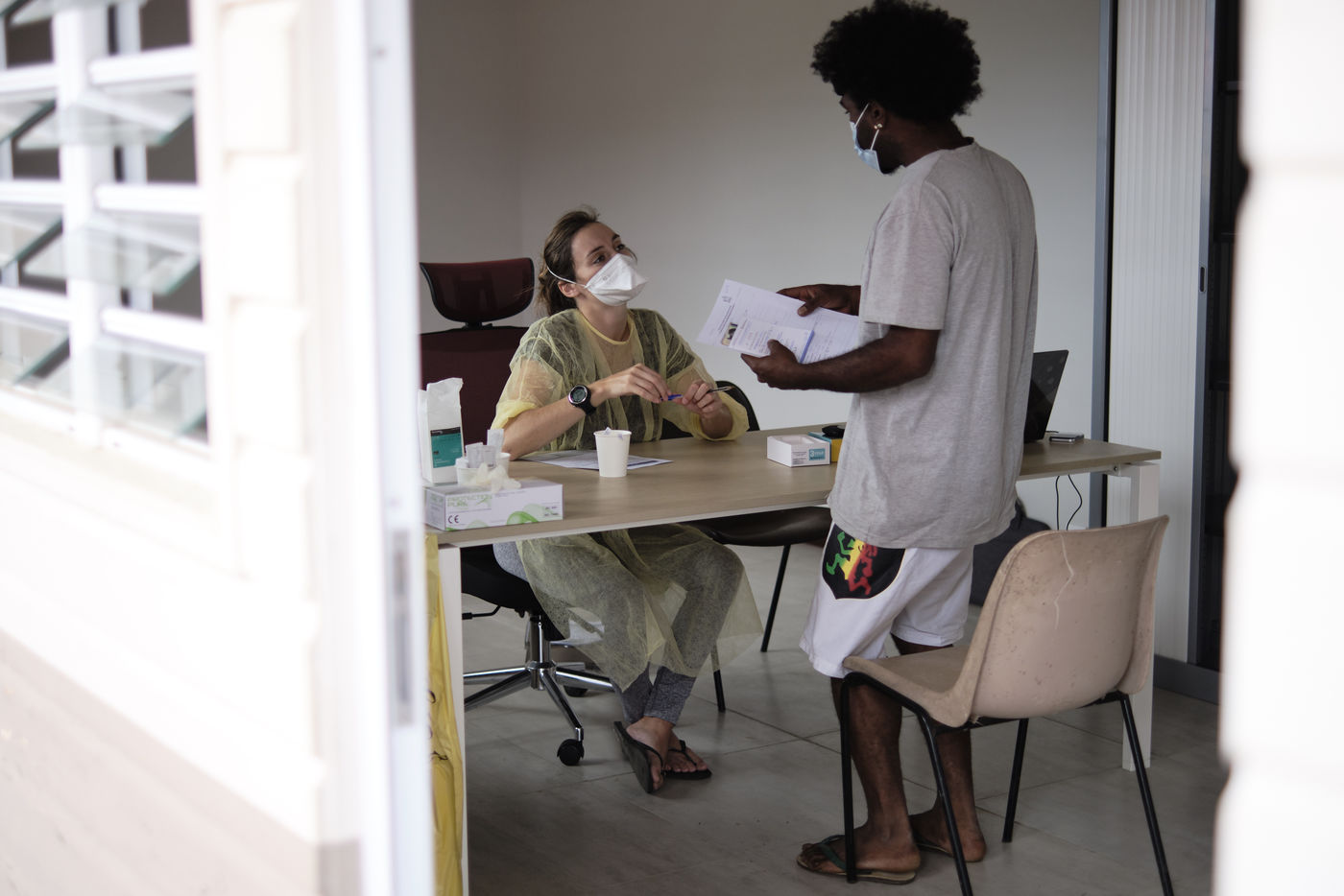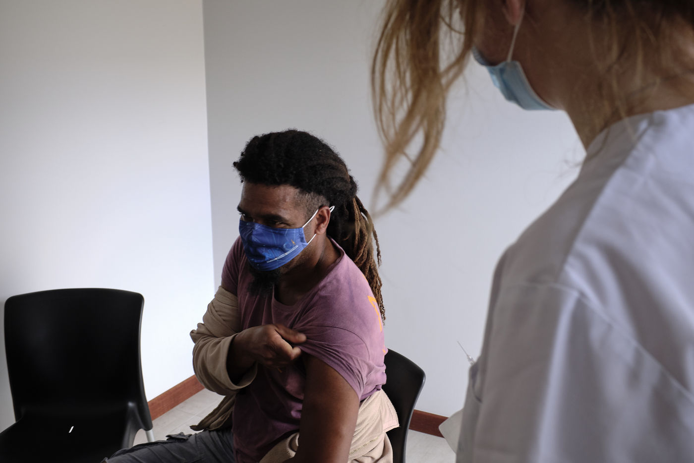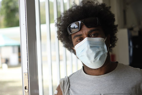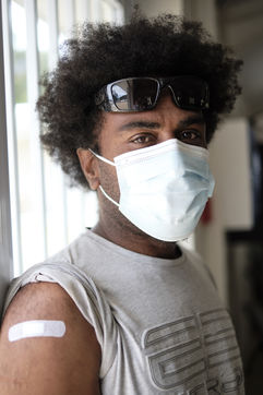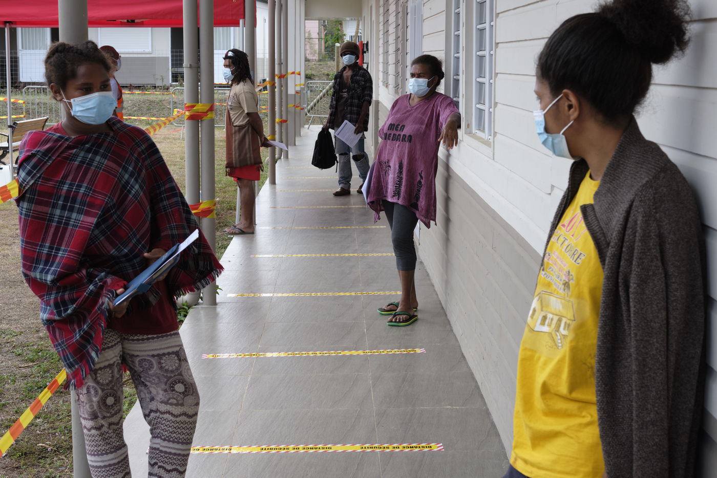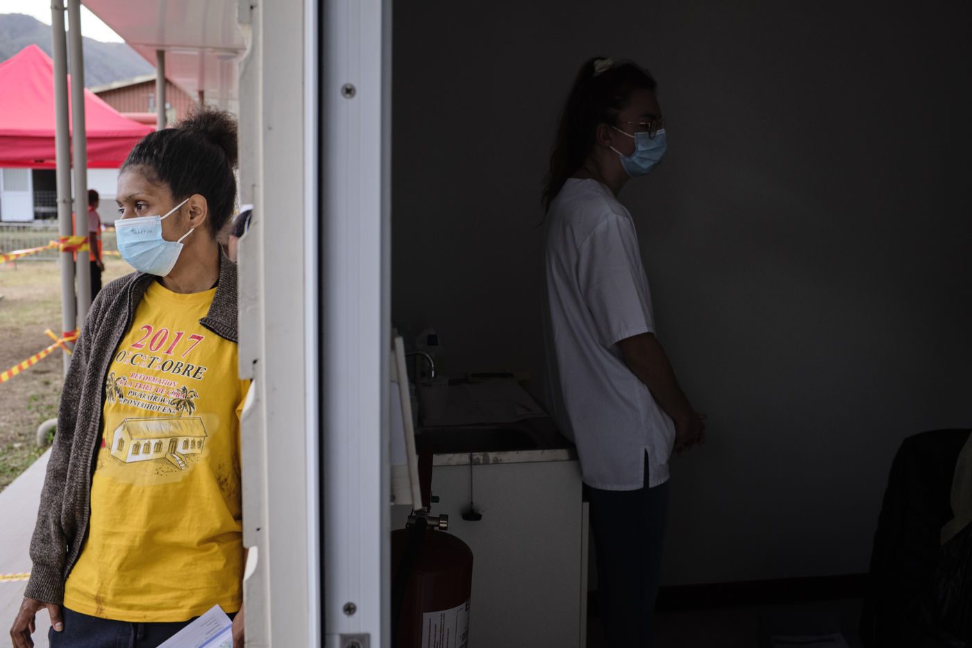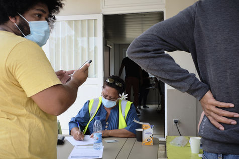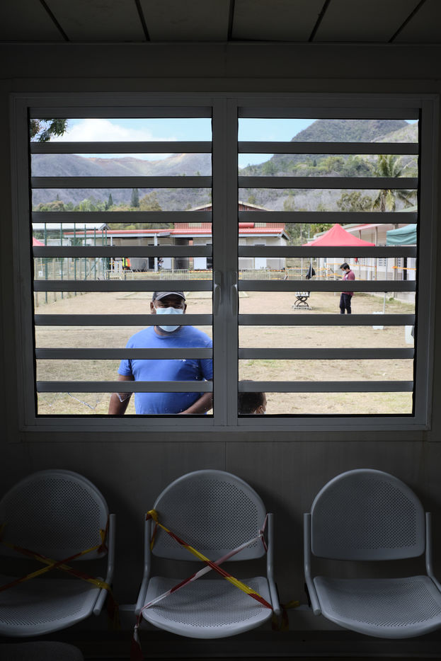 Nouvelle-Caledonie, Kouaoua, samedi 25 septembre 2021. La commune minière de la côte Est organise une opération de vaccination de proximité pour les populations des tribus kanak environnantes. L'épidémie de Coronavirus progresse en Nouvelle-Caledonie depuis début septembre, alors que seulement 50 % de la population a reçu une dose et que la campagne de vaccination ralentie.