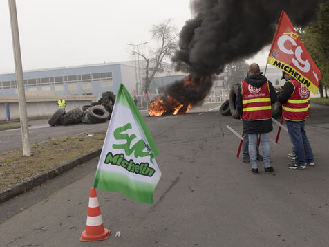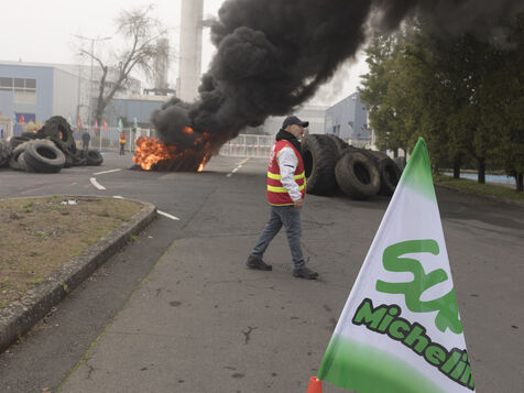 Cholet, Usine Michelin, le mardi 05 novembre 2024. Rassemblement des salariés devant l'usine du fabriquant de pneumatiques après l’annonce dans la matinée, par la direction du groupe, de la fermeture avant 2026 du site comptant 960 salariés.