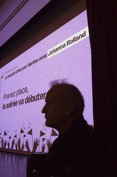 Nantes, le vendredi 21 novembre 2025, salon Mauduit. Un millier de personnes ont assisté au premier meeting pour les élections municipales de 2026 de la liste "La Gauche Unie pour Nantes" menée par Johanna Rolland (PS) actuelle maire de Nantes. La liste regroupe les mouvements de gauche : Le Parti socialiste (PS) ; Les Écologistes / Ambitions communes, Le Parti Communiste Français (PCF), L’Après, Le Parti radical de Gauche (PRG), Union Démocratique Bretonne (UDB), Territoires 44, Debout, Génération Ecologie, le Parti Animaliste et Place Publique, seuls manquent à l'appel : LFI (La France Insoumise).