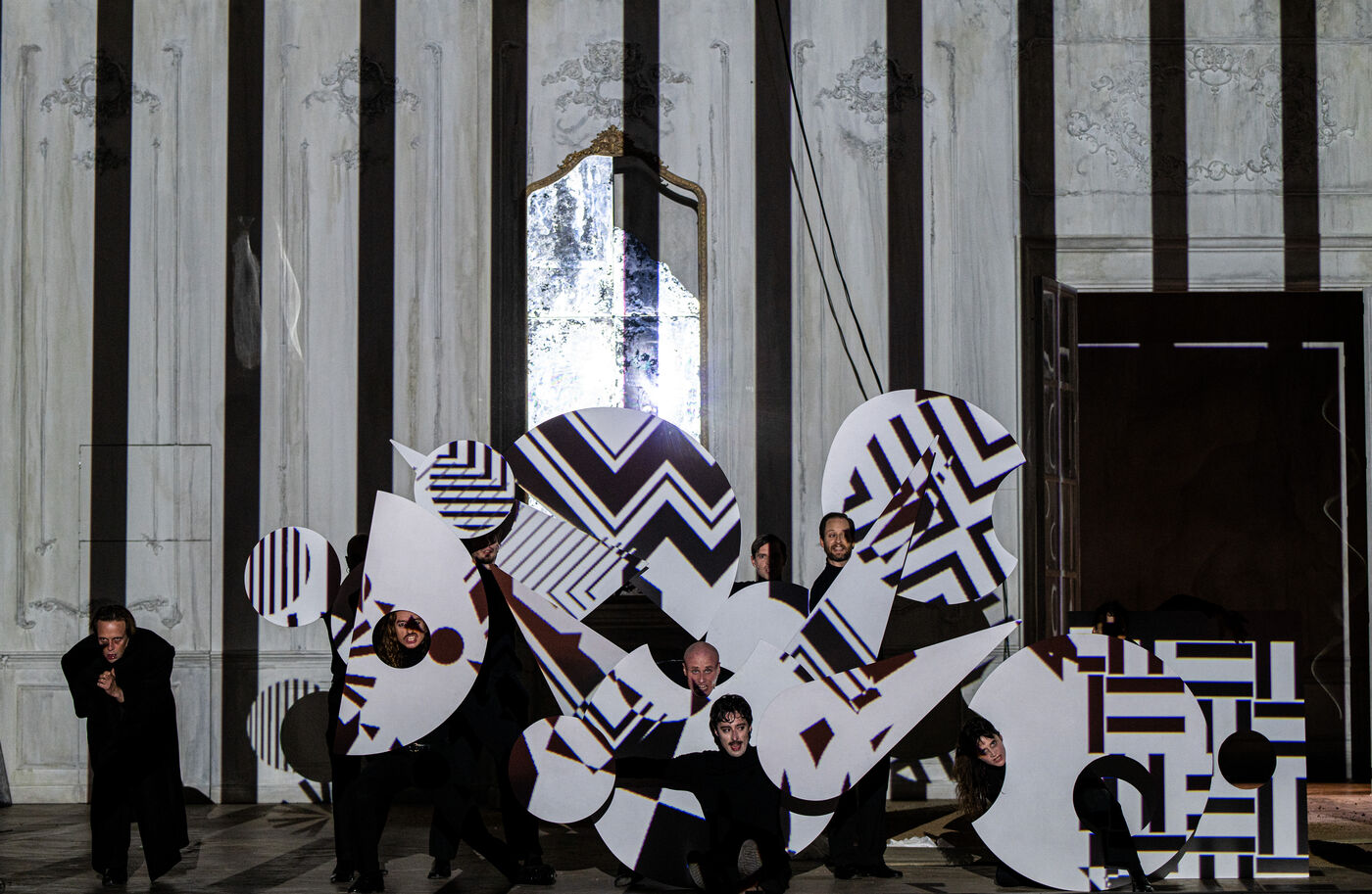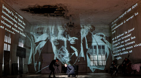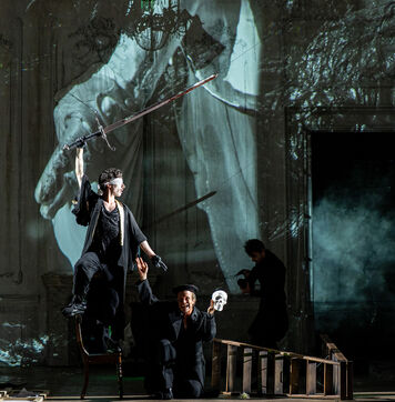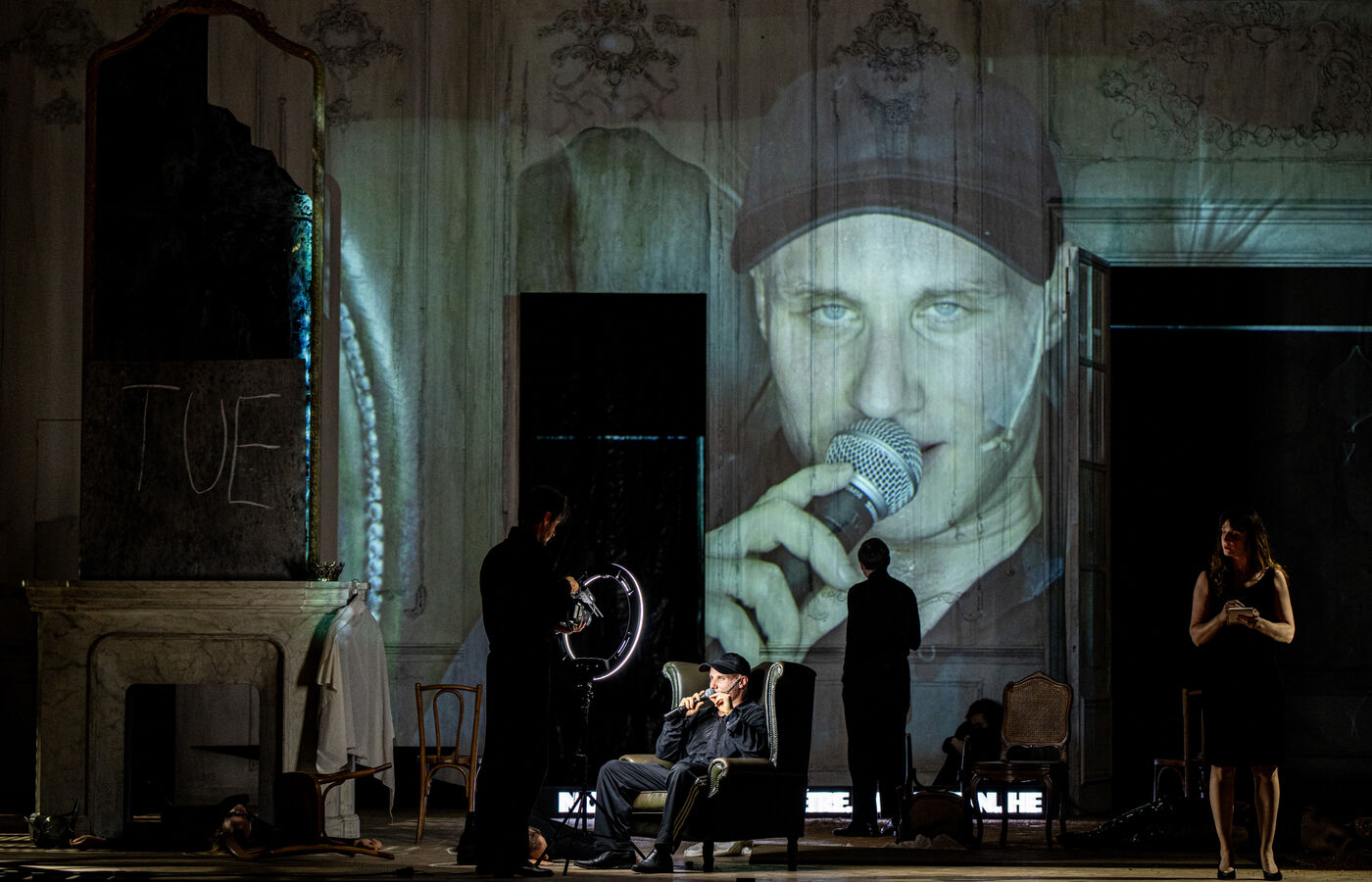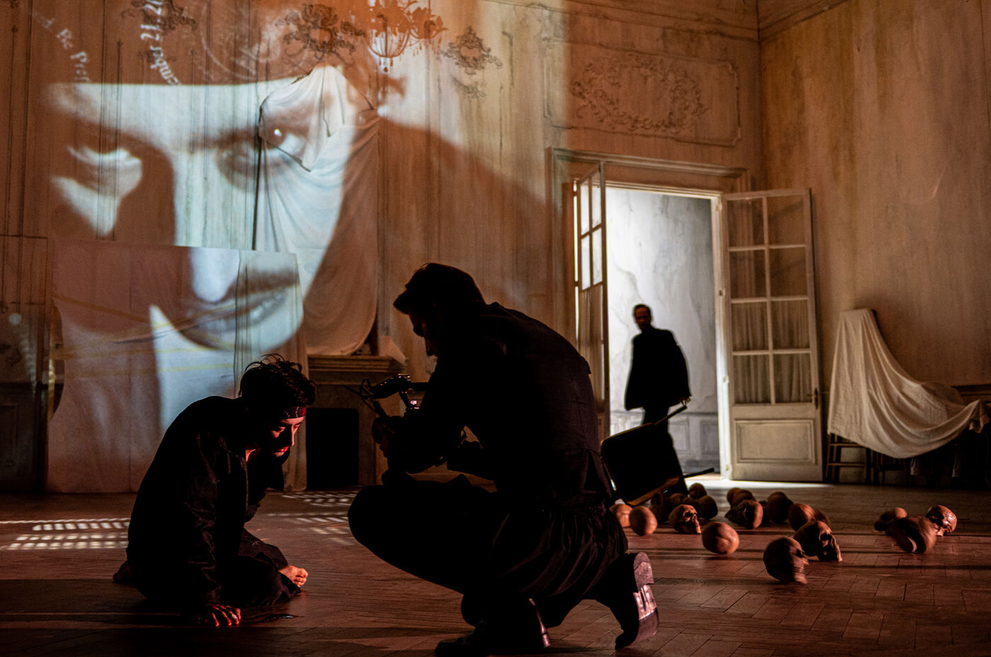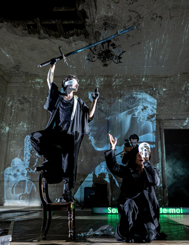 Adapted to musical theater, that is, with a performative approach combining text and music in every possible combination, Hamlet / Ghosts is accompanied by the Ensemble Intercontemporain, conducted by Pierre Bleuse, alternating with Yalda Zamani. The orchestra will perform the music of Blaise Ubaldini, which was conceived and composed for a large ensemble (thirty musicians) with drums and electric bass, an electronic synthesizer, and a vocal trio.