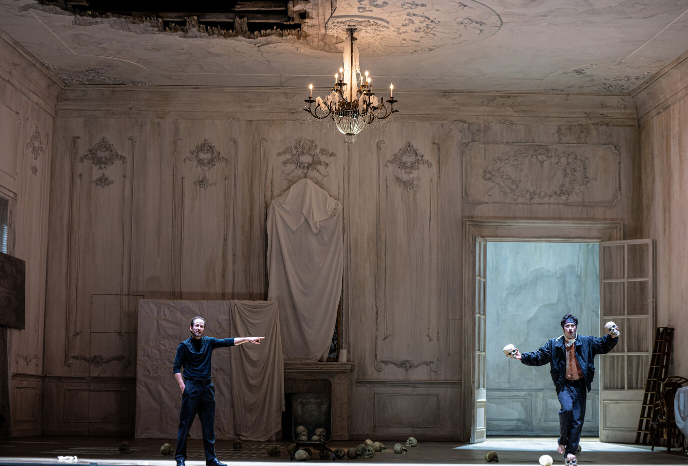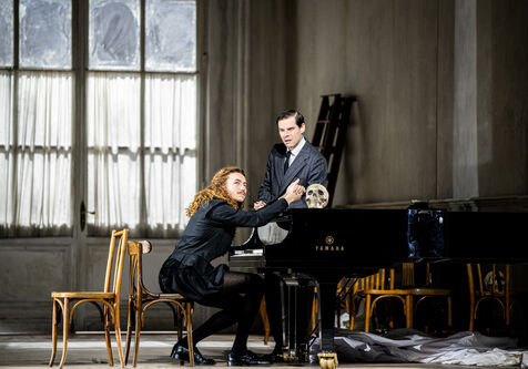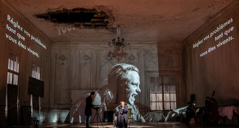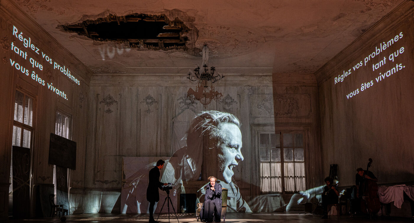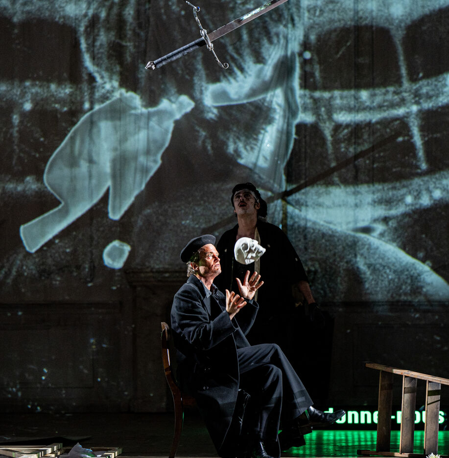 Adapted to musical theater, that is, with a performative approach combining text and music in every possible combination, Hamlet / Ghosts is accompanied by the Ensemble Intercontemporain, conducted by Pierre Bleuse, alternating with Yalda Zamani. The orchestra will perform the music of Blaise Ubaldini, which was conceived and composed for a large ensemble (thirty musicians) with drums and electric bass, an electronic synthesizer, and a vocal trio.