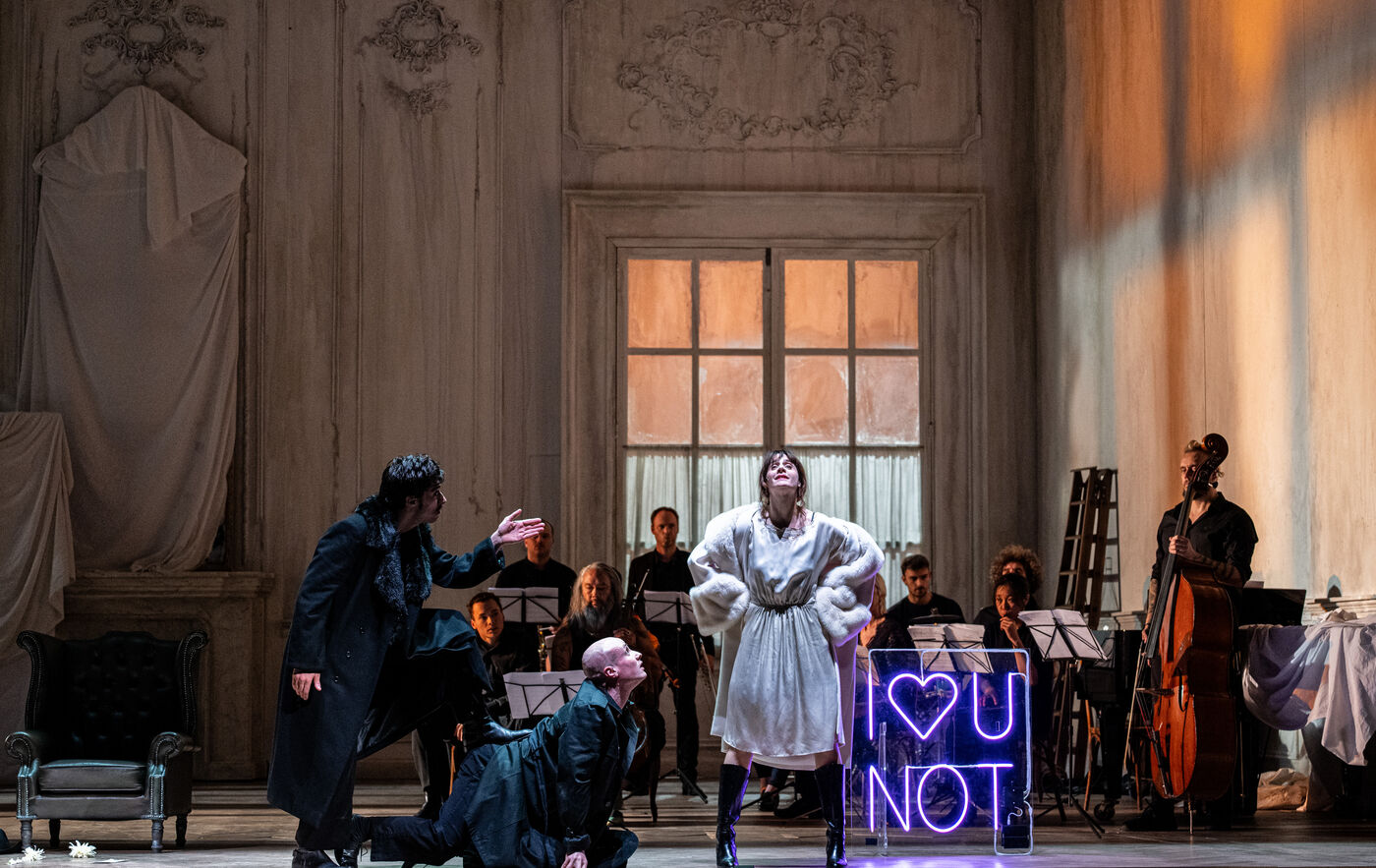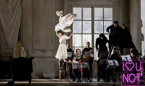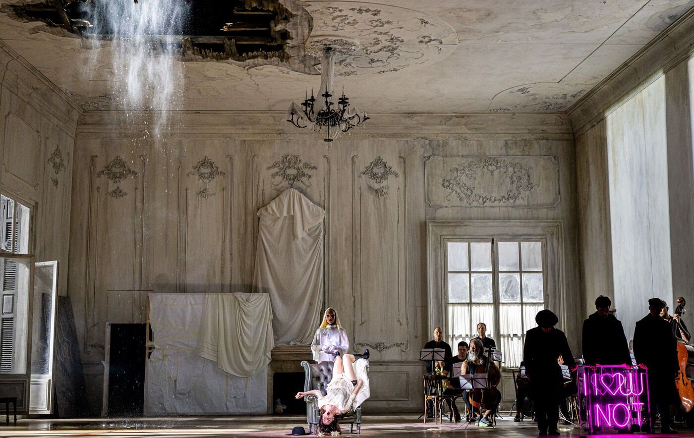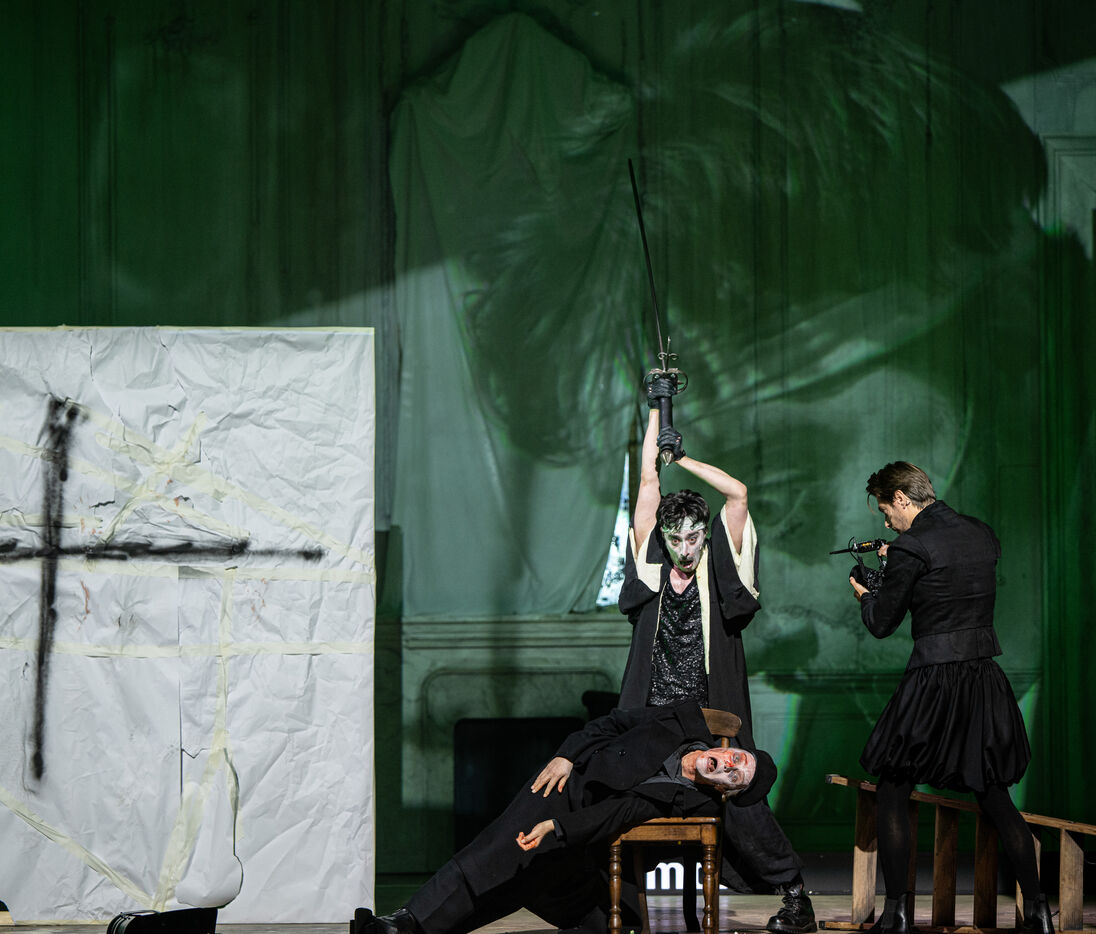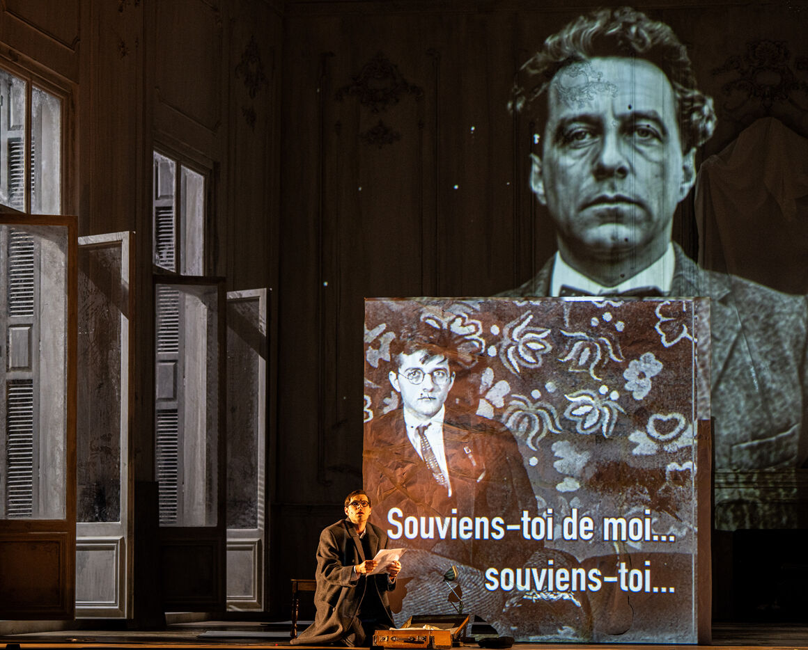 Adapted to musical theater, that is, with a performative approach combining text and music in every possible combination, Hamlet / Ghosts is accompanied by the Ensemble Intercontemporain, conducted by Pierre Bleuse, alternating with Yalda Zamani. The orchestra will perform the music of Blaise Ubaldini, which was conceived and composed for a large ensemble (thirty musicians) with drums and electric bass, an electronic synthesizer, and a vocal trio.