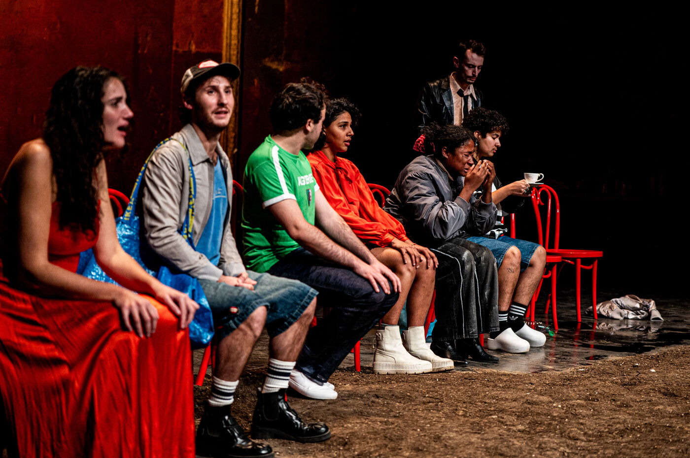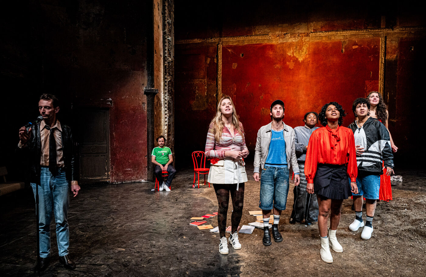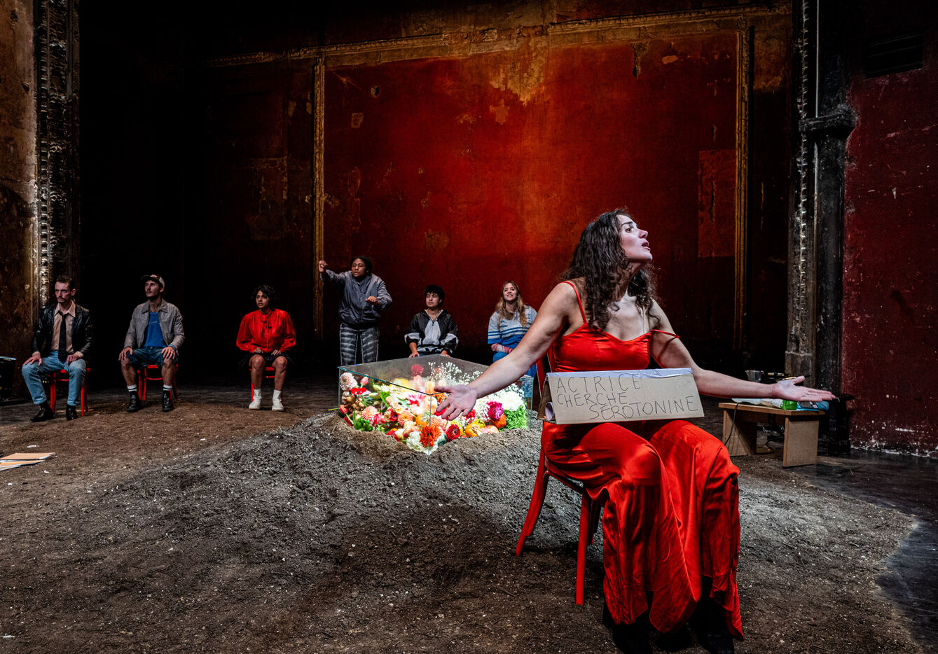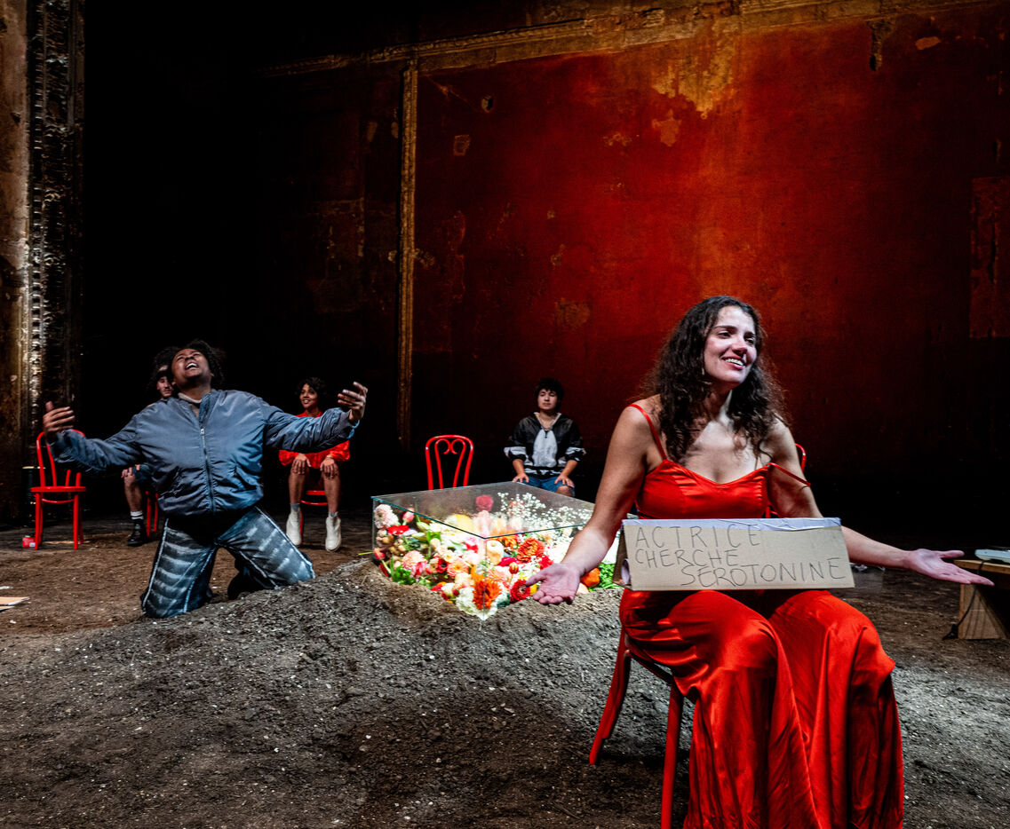For their latest creation, director Lorraine de Sagazan and playwright Guillaume Poix have assembled a cast of eight up-and-coming actors from the Adami Théâtre Talents program. All are in their early twenties. All were selected from some 1,800 applicants. All participated in the development of this play dedicated to romantic passion: its history, its idealization, its current manifestations, and its alternatives. It's a way to discover and question how this new generation invents and conceives of its relationship to desire, to others, to marriage, and to freedom. Following Leviathan, A Rite of Spring, and The Invisible Life, the artistic duo continues their work, which blends encounters and interviews, improvisation and scriptwriting on stage. Their cathartic and utopian theatre, at the crossroads of performance and visual arts, aims to address the frustrations we experience in everyday life, norms, and institutions.