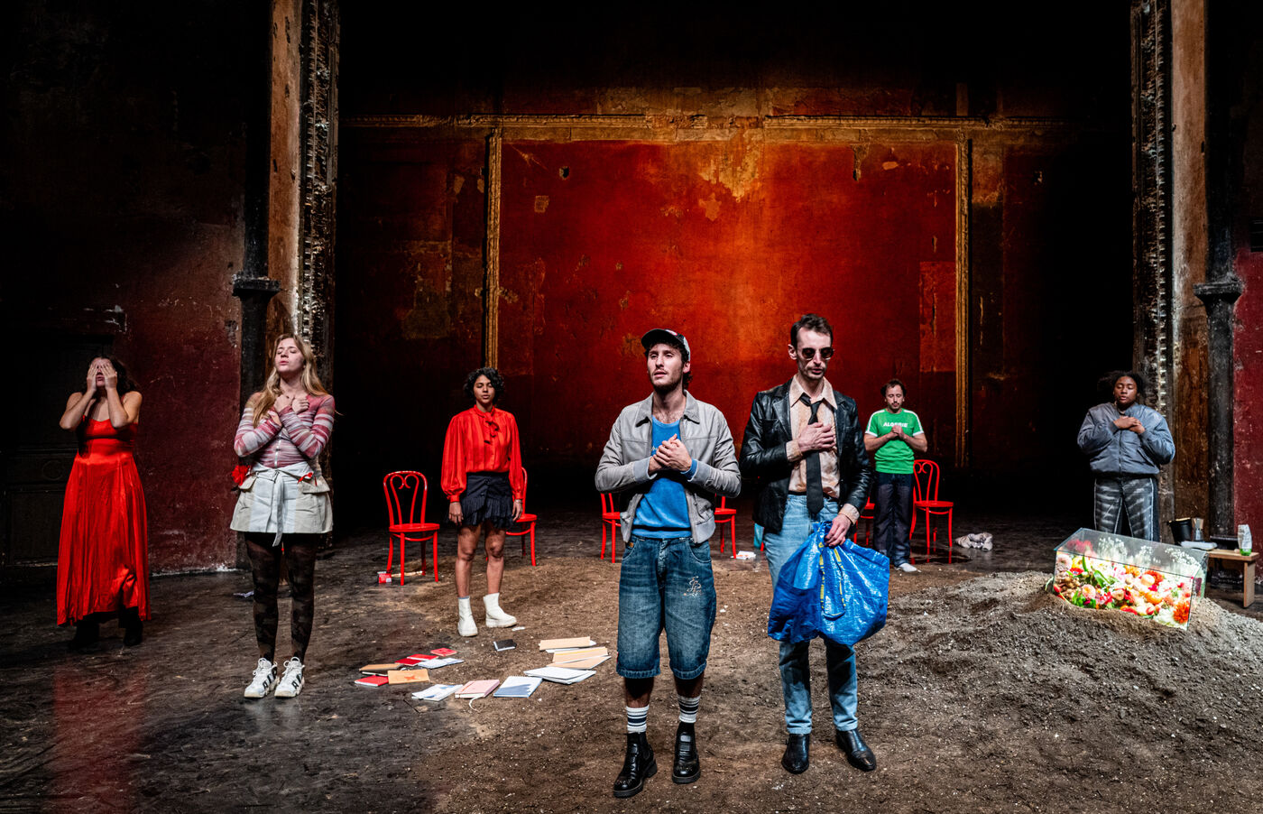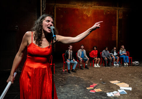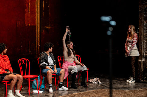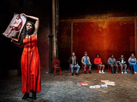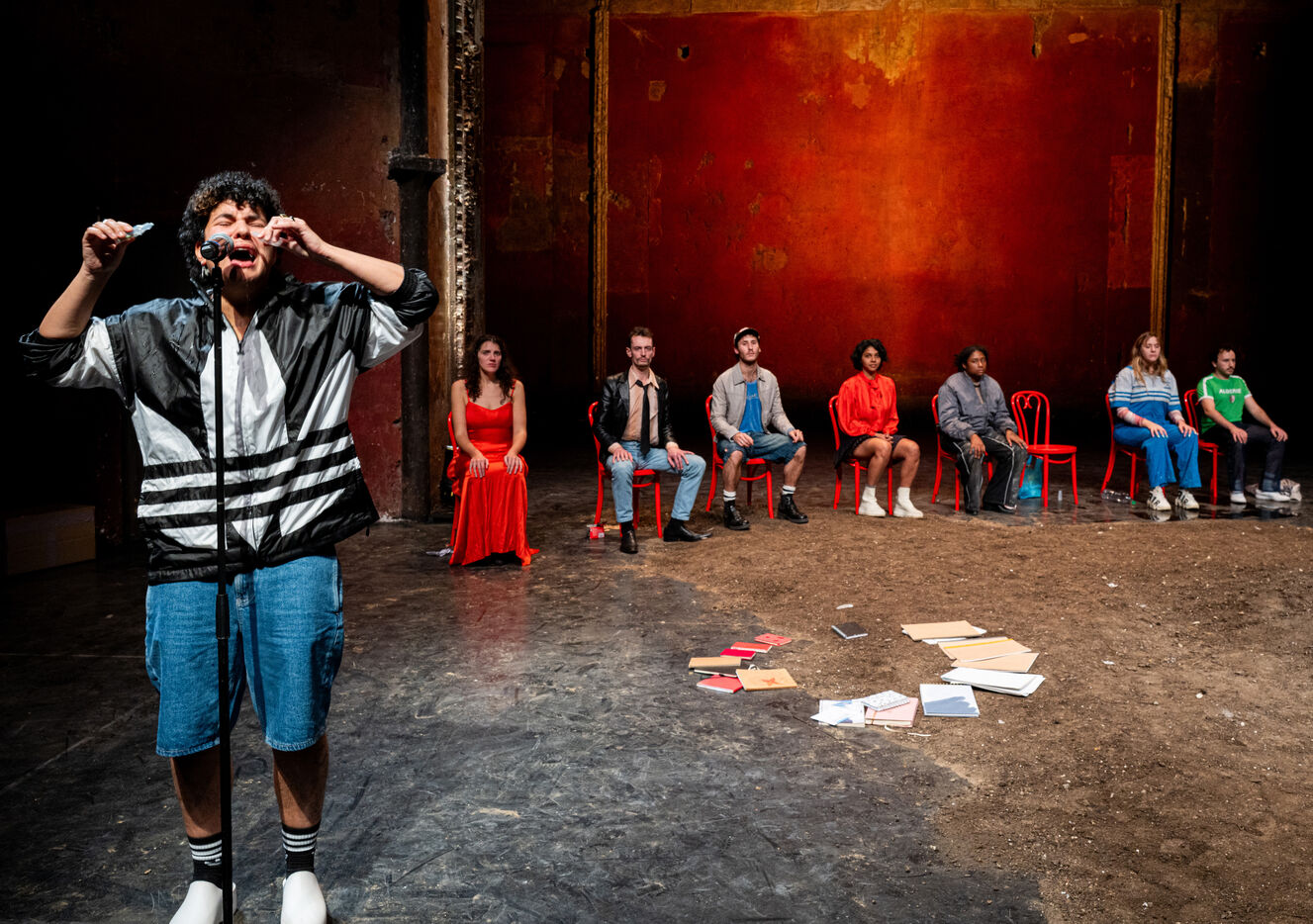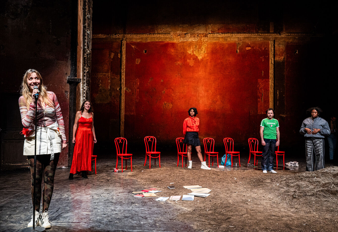 For their latest creation, director Lorraine de Sagazan and playwright Guillaume Poix have assembled a cast of eight up-and-coming actors from the Adami Théâtre Talents program. All are in their early twenties. All were selected from some 1,800 applicants. All participated in the development of this play dedicated to romantic passion: its history, its idealization, its current manifestations, and its alternatives. It's a way to discover and question how this new generation invents and conceives of its relationship to desire, to others, to marriage, and to freedom. Following Leviathan, A Rite of Spring, and The Invisible Life, the artistic duo continues their work, which blends encounters and interviews, improvisation and scriptwriting on stage. Their cathartic and utopian theatre, at the crossroads of performance and visual arts, aims to address the frustrations we experience in everyday life, norms, and institutions.