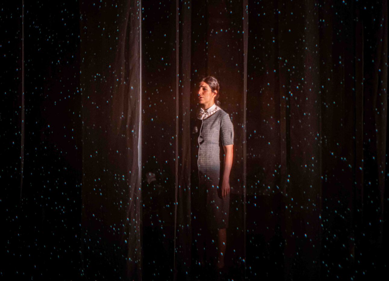 Forough Farrokhzad, a rebellious poet, an unclassifiable filmmaker, and a shining figure of freedom in 1960s Iran, is one of the inspirations behind the Iranian women's liberation movement. Today, actress and director Mina Kavani gives her body and voice in an incandescent performance, a blend of personal narrative and poetic homage. *My House Is Black* weaves an intense dialogue between two women, two generations, two exiles: Forough's, banned from publishing in her country since the Islamic Revolution, and Mina's, who fled censorship to find freedom on stage. Through a montage of poems, letters, interviews, and images, the performance evokes a vivid memory, imbued with anger, sensuality, and hope.