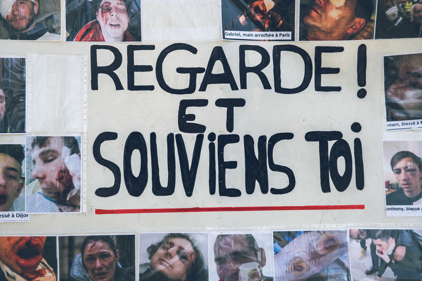 Toulouse, January 18, 2019. Some 20 yellow vests have demonstrated to denounce police violence since the yellow vest movement began in November 2018. They paid tribute to the many injured during the demonstrations.