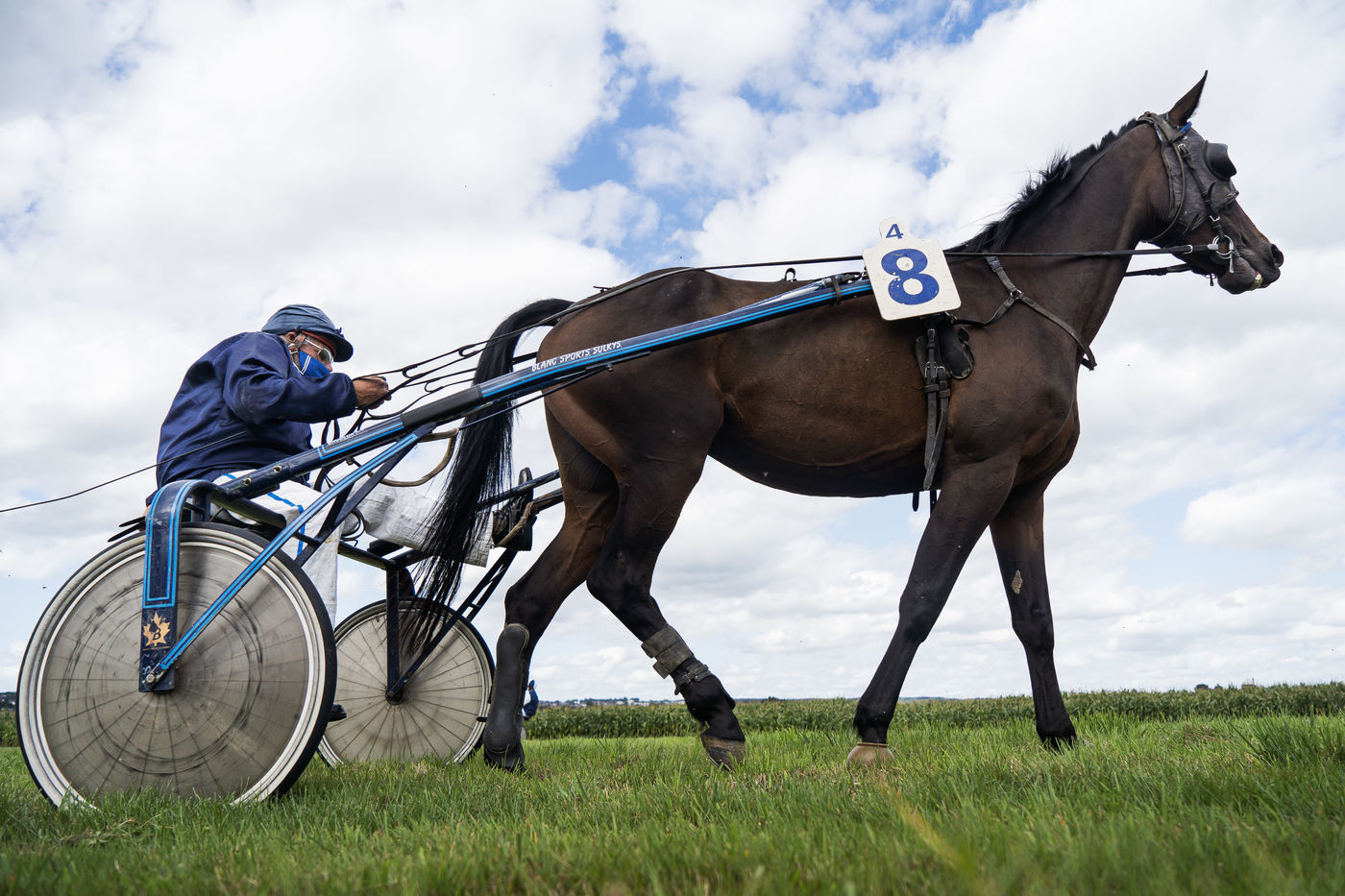 Une course de trot à l'hippodrome de Fougères en Bretagne, le 23 août 2020.