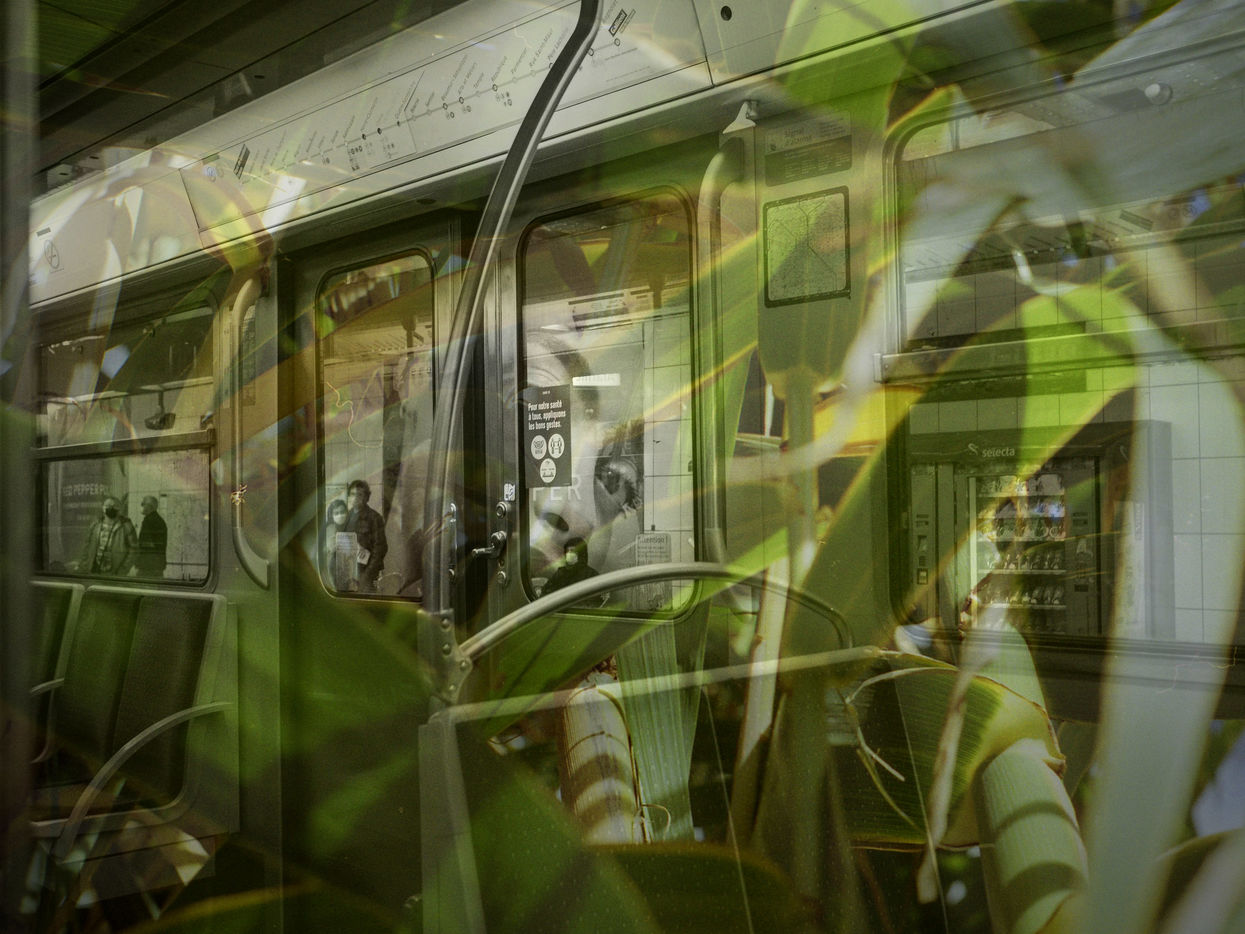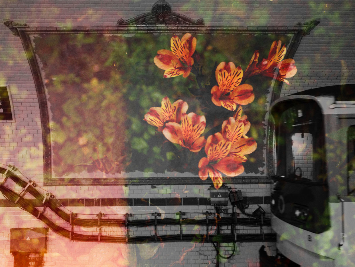 Valentino Belloni, photojournaliste, équipé d'un boîtier numérique, partage son regard sur les ambiances de vie dans ce moyen de transport. Joséphine Bichareil artiste photographe, dont l'un des objets de travail est le monde végétal, saisit avec son argentique la diversité de cet univers dans les parcs et jardins parisiens. Entre illusion et réalité, numérique et organique, ils constituent une série de doubles expositions.