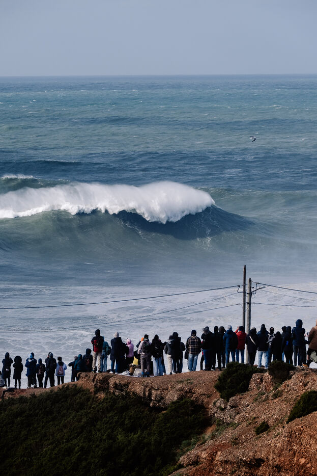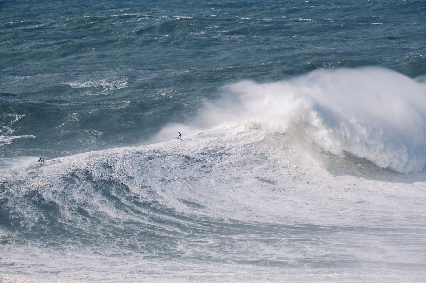In January 2025, in Nazaré, surfers ride the biggest waves on the planet during this giant swell.