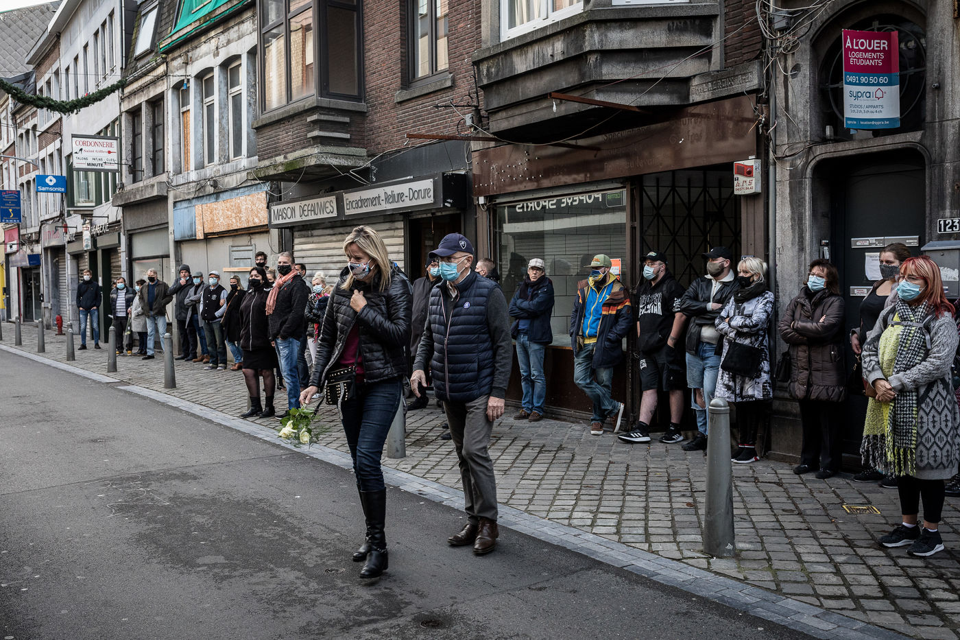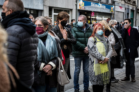 19 Novembre 2020. Au coeur de Liège,Belgique, plusieurs dizaines de personnes viennent rendre hommage à la jeune Alysson Jadin. Jeune indépendante de 24 ans qui s?est suicidée suite à la crise sanitaire que connait la Belgique depuis plusieurs mois.