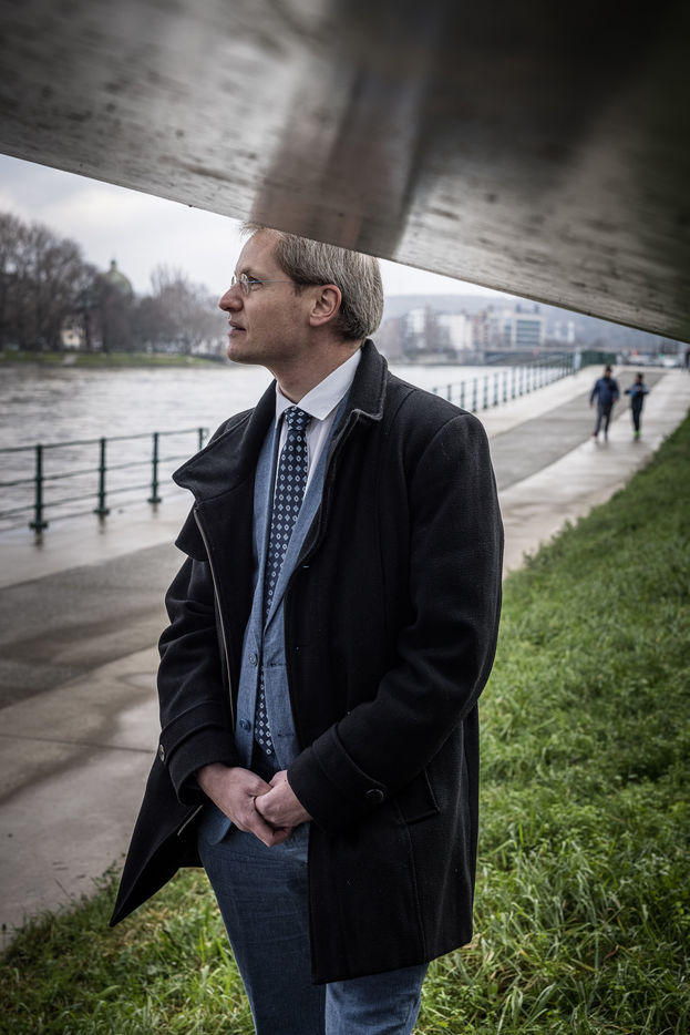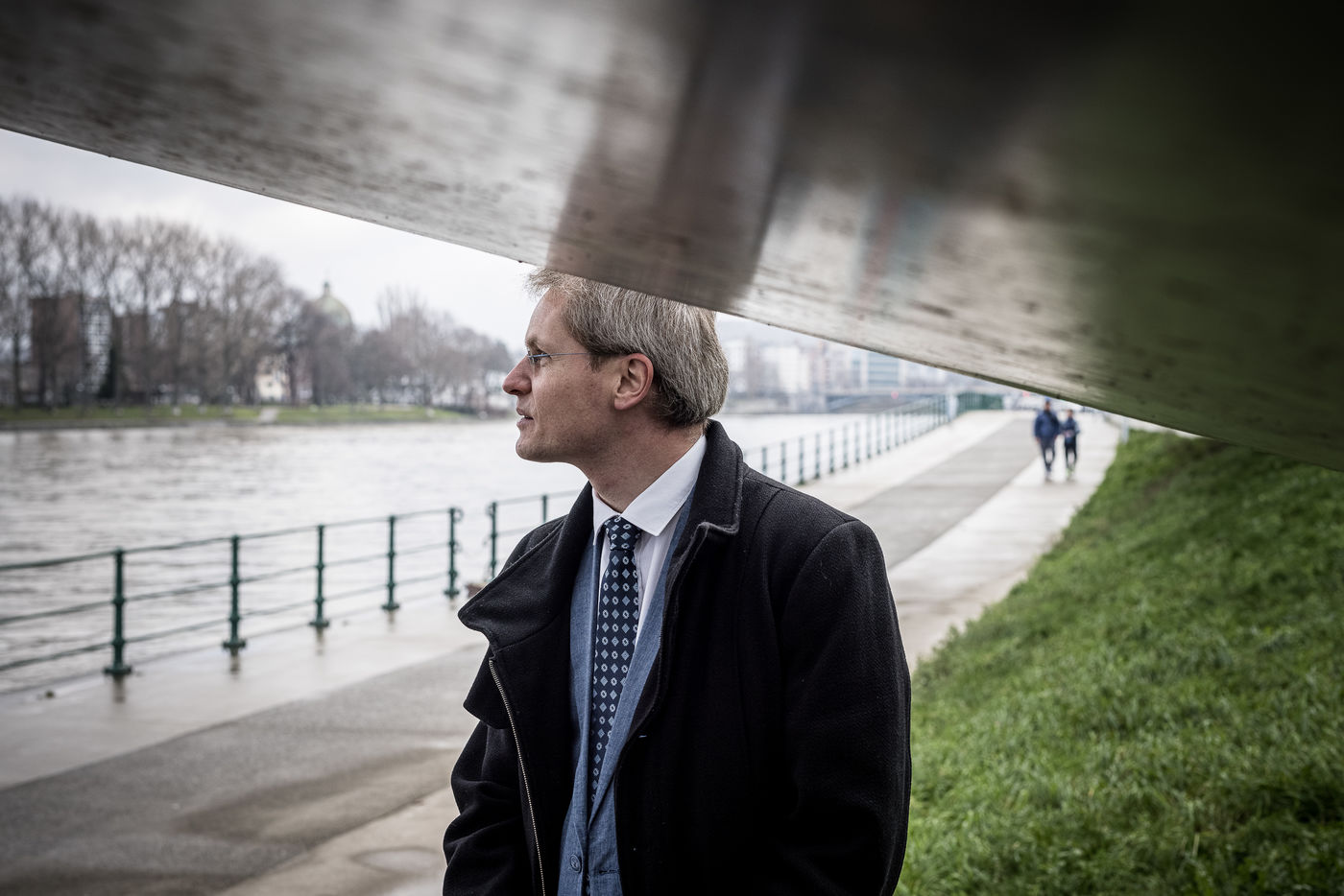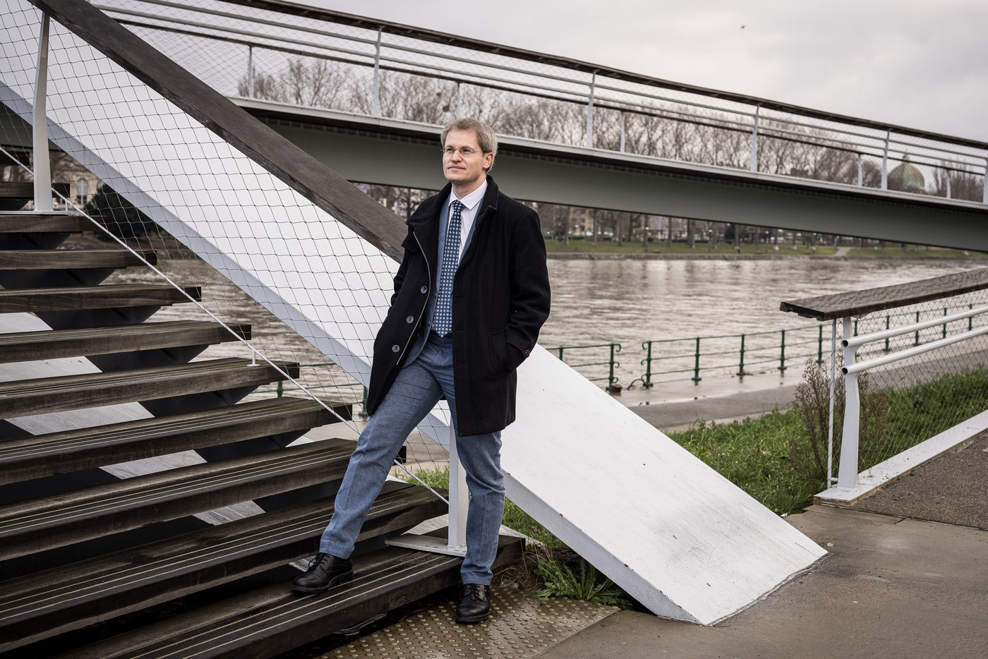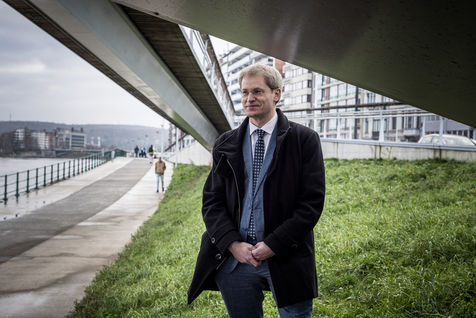 Liege, Belgium. December 30th, 2020. Portrait of Jean Faniel, executive Director of CRISP, near the Meuse river.