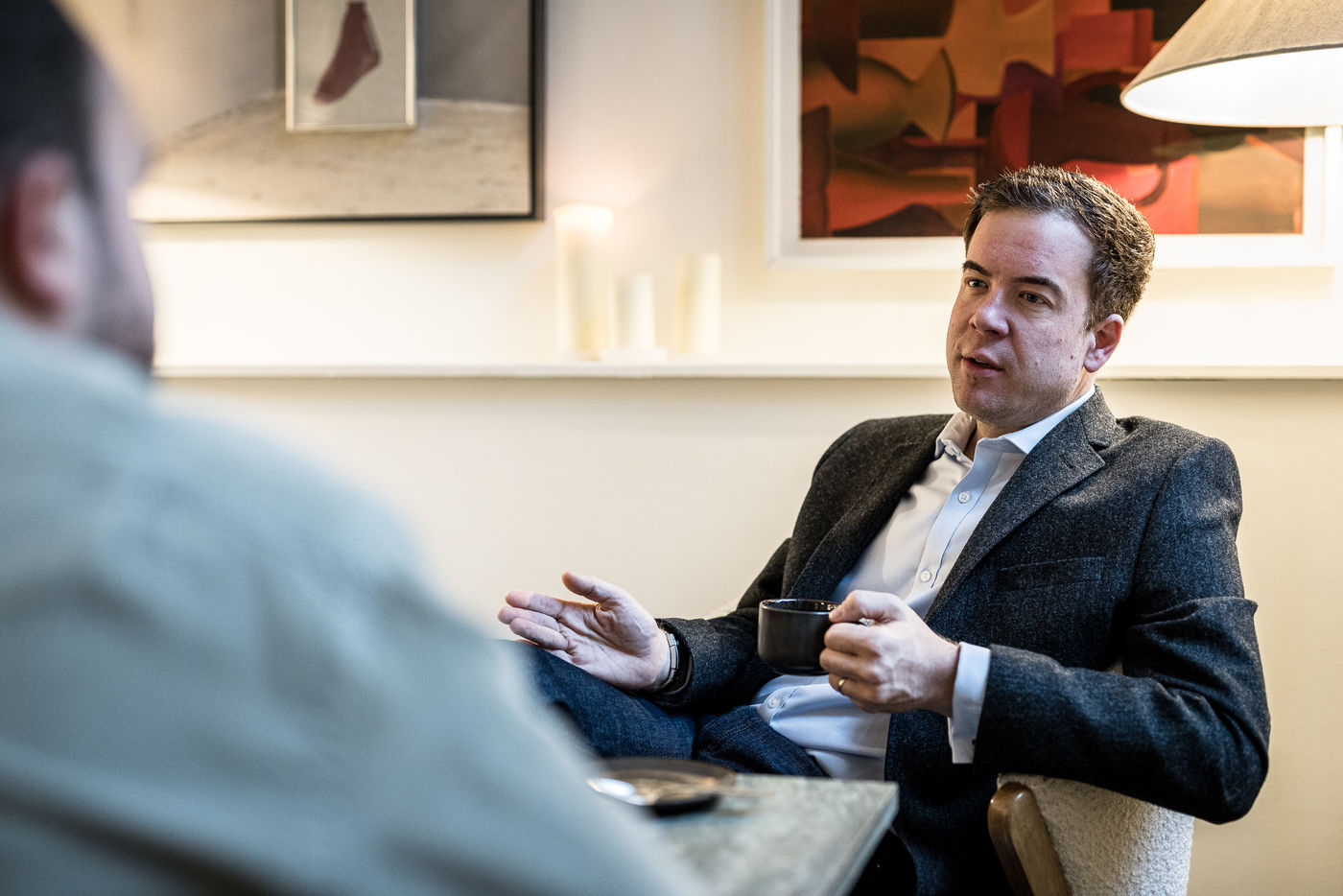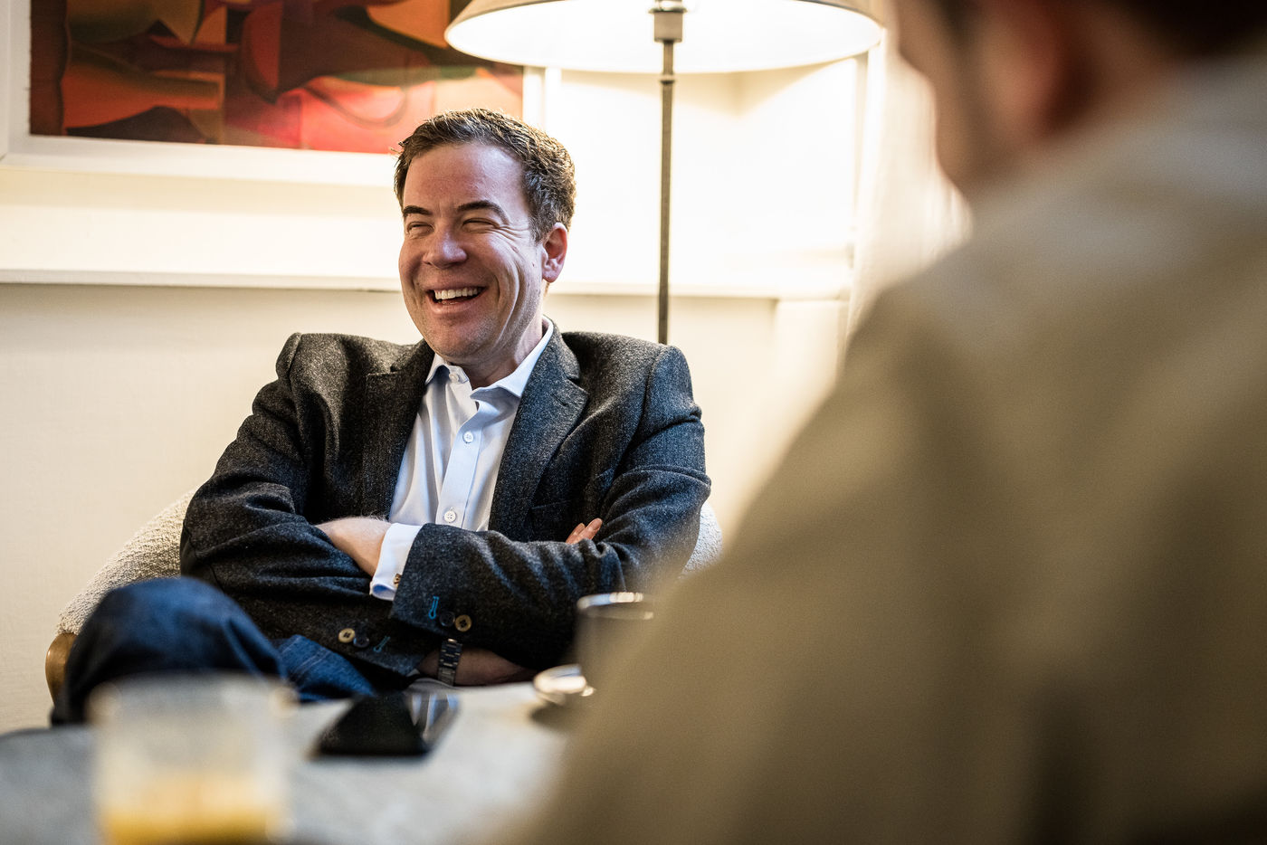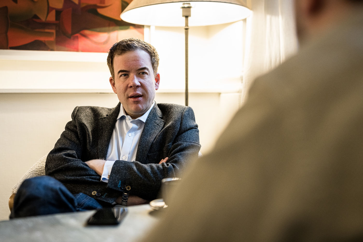 Bruxelles, Belgique. 2022-11-03. Portrait de Rob Kniaz, a la tete d un fond d investissement americain, Hoxton Ventures. Il vient en Belgique pour decouvrir des projets interessants.