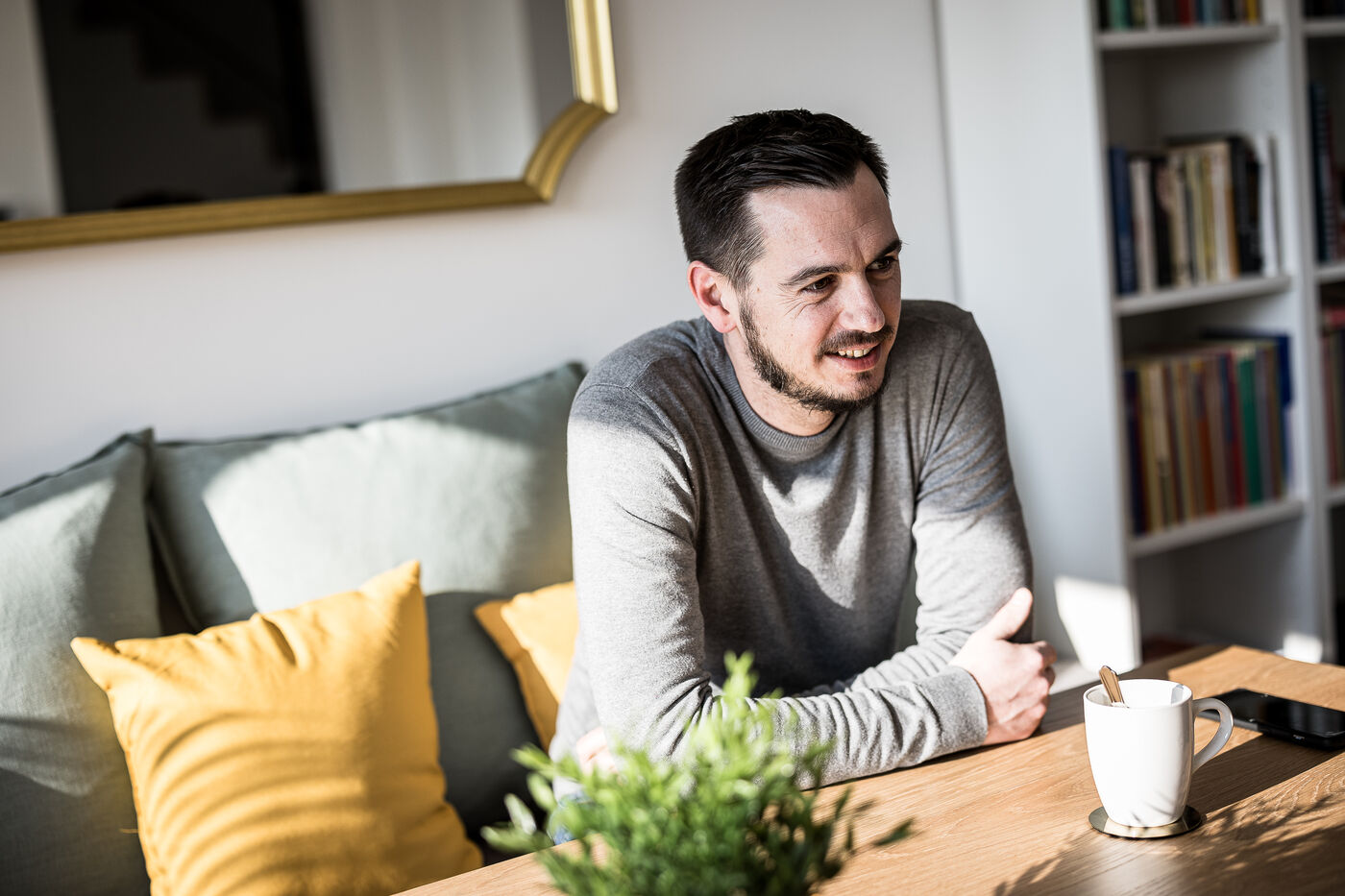 Herstal, Belgique. 2024-03-06. Portrait de Julien Liradelfo, depute et membre du PTB. Photographie de Valentin Bianchi / Hans Lucas
