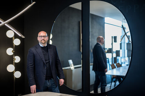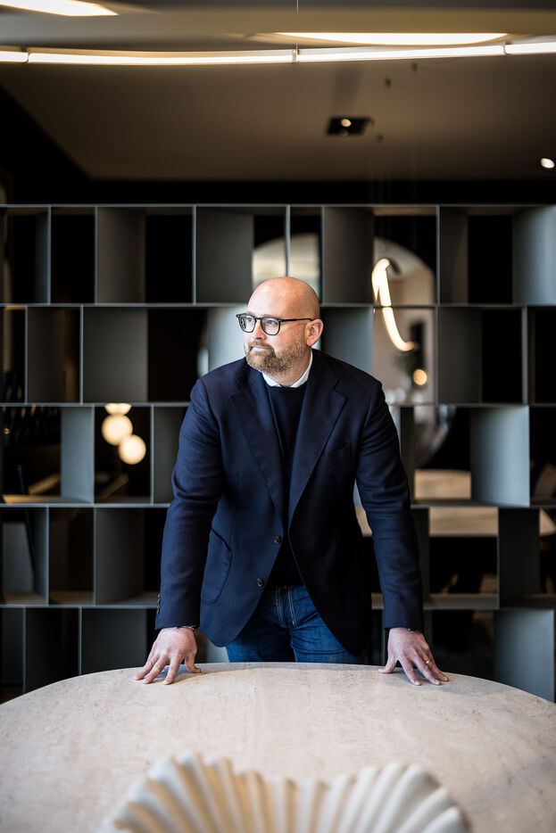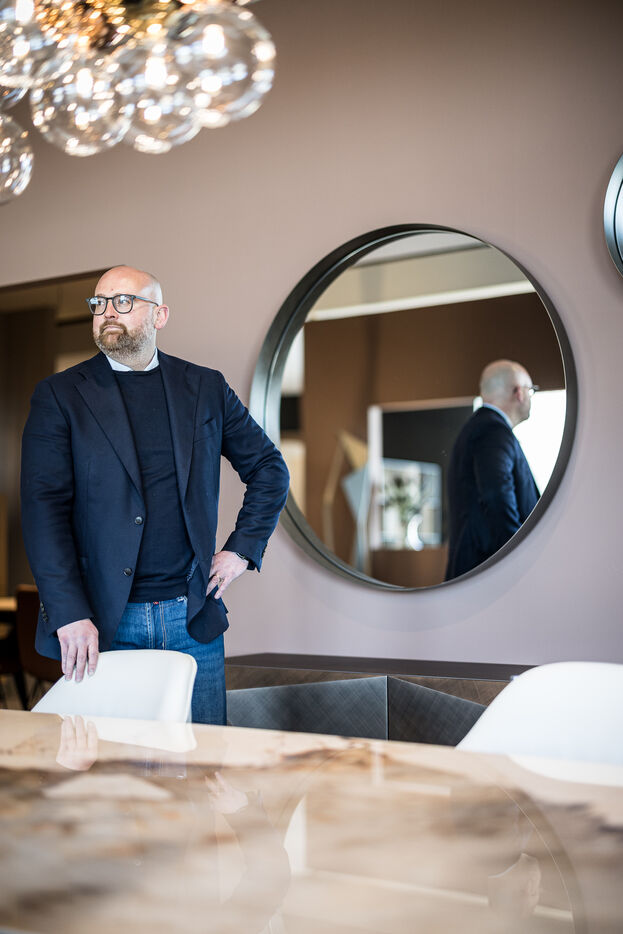 Portrait of Sebastien Mailleux, Administrator of Meubles Mailleux in Neupre, Belgium, April 2, 2025.