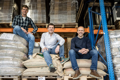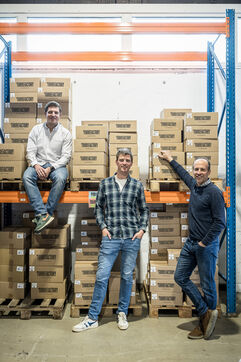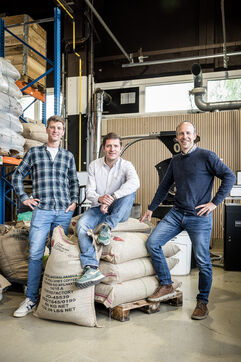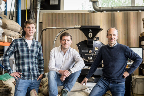 Portrait of Florent Henry, Arthur Lhoist and Laurent-Emmanuel Dubuc from Torrefactory in Mont-Saint-Guibert, Belgium, April 23, 2025.